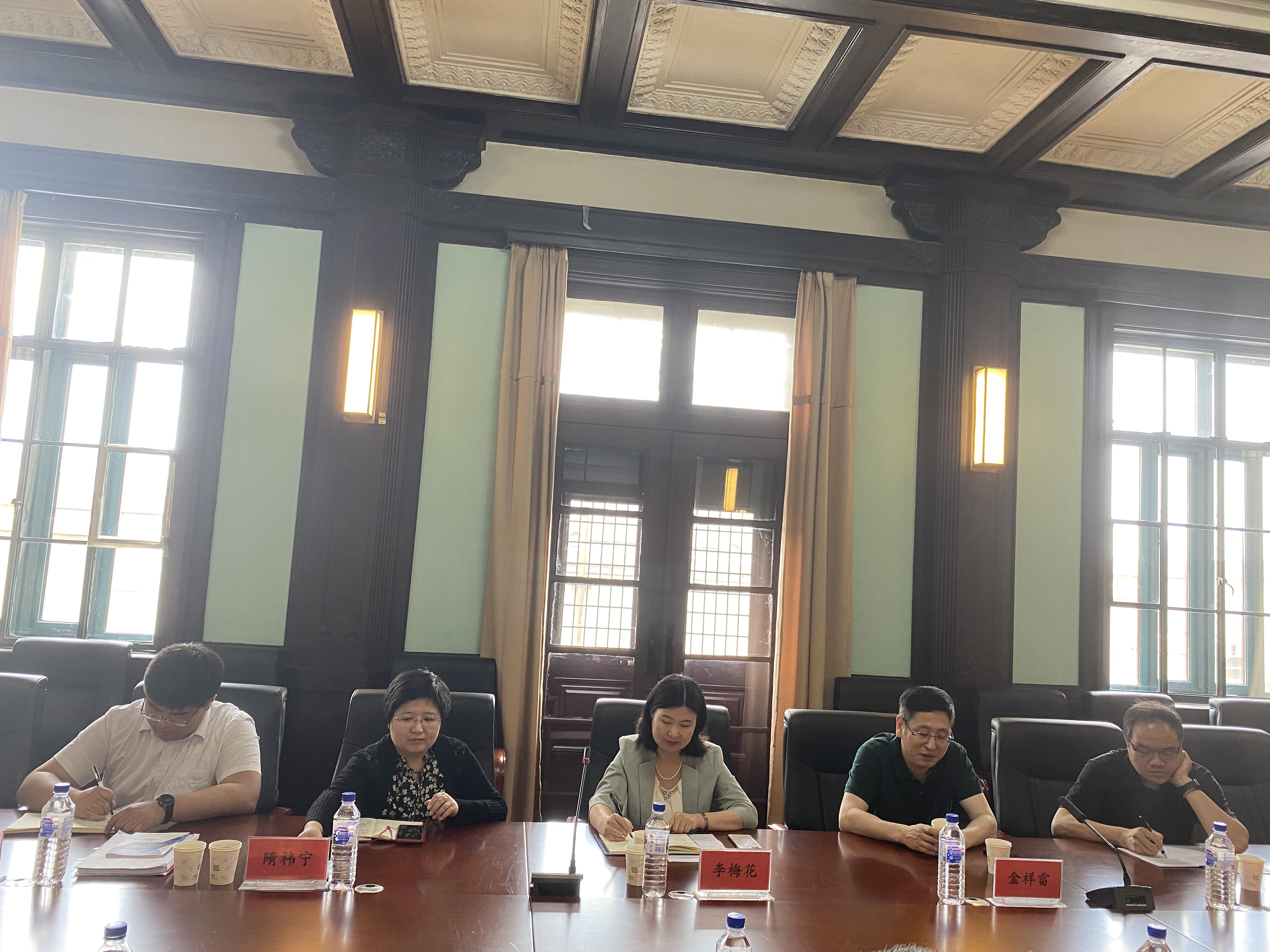 In order to promote the management of international students in the College of Basic Medical Sciences, a seminar was held on the morning of Jun 15th. Guests include Dean Li Meihua, Vice Dean Sui Yining, Vice Dean Liu Yang of the College of International Education, Jin Xianglei, Vice Director of the College of International Education, and Xu Qinghui, Deputy Director of Medical Education Office. Party Secretary Wang Xiaorong, Dean Wang Fang, Vice Dean Sun Wei, Vice Dean Li Hongyan, Vice Dean Xin Ying, and leaders of relevant functional departments of the College of Basic Medical Sciences participated in the exchange meeting.