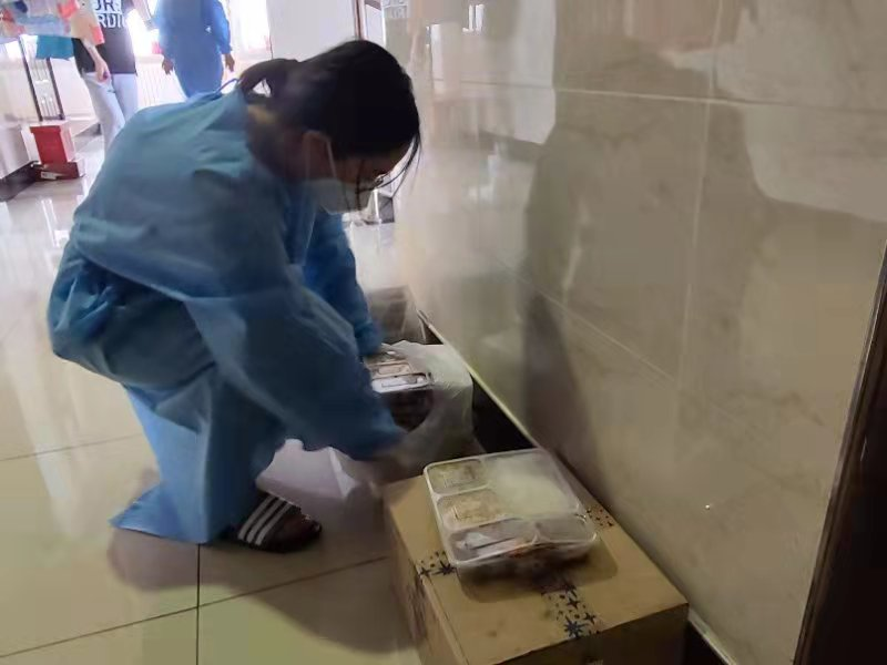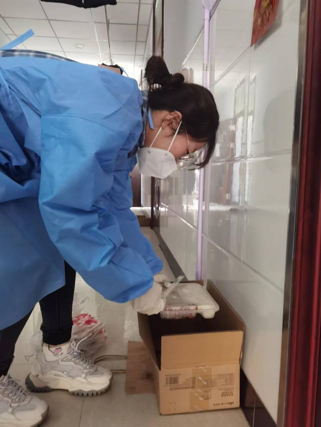 在学院党委的领导下,第二党支部的党员同志们闻令而动,主动请缨,义不容辞地在“疫”线奋战,积极参与各项志愿服务。在这将近两个月的校园封闭管理期间,大家听从统一领导,严密细致做好疫情防控相关工作。早上七点,楼长老师发布取餐通知后,楼栋志愿者立即穿好防护服,佩戴好N95口罩,整装待发。为了让同学们尽快吃到热乎乎的饭菜,一至六楼的同学们形成一条完整的“配餐链”,大家分工明确,及时地将餐食送到每位同学手中。支部的男同学们主动承担起搬重物的责任,将一箱箱矿泉水和物资从一楼搬运至六楼,任凭汗水湿透衣襟,他们的脚步也未曾停歇。还有的同学负责每天统计楼栋人员居住信息和需求,发放抗原试剂和统计核酸检测结果等,大家日复一日都在默默的做着这些工作,没有一句怨言,只为保障同学们的日常需求和健康。