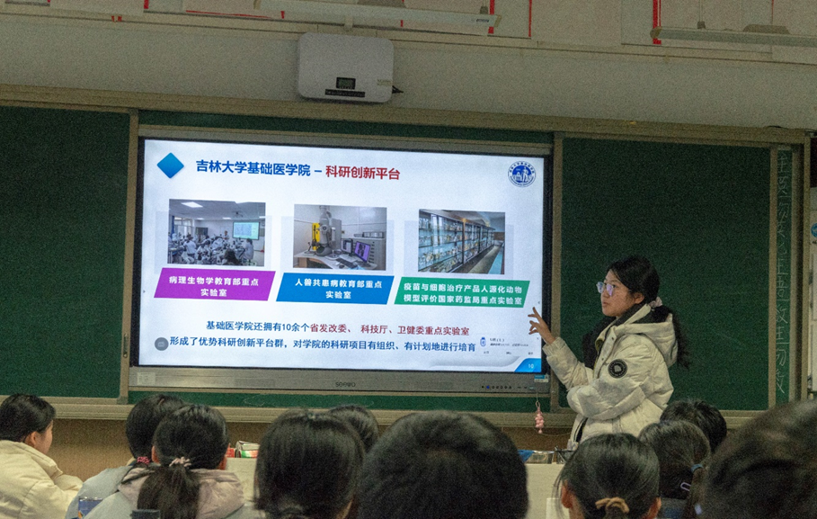 的历史背景、学科优势、特色专业、就业情况、校园活动等方面内容,然后小组五人就各自专业分工进行了讲解。在演讲过程中,穿插了提问互动,给予备考生们的备考经验及填报志愿的心得,为他们报考大学提供一定的指导,助力学弟学妹们备考顺利,报考理想的大学。并给积极响应的同学们送出了吉大特色文创。