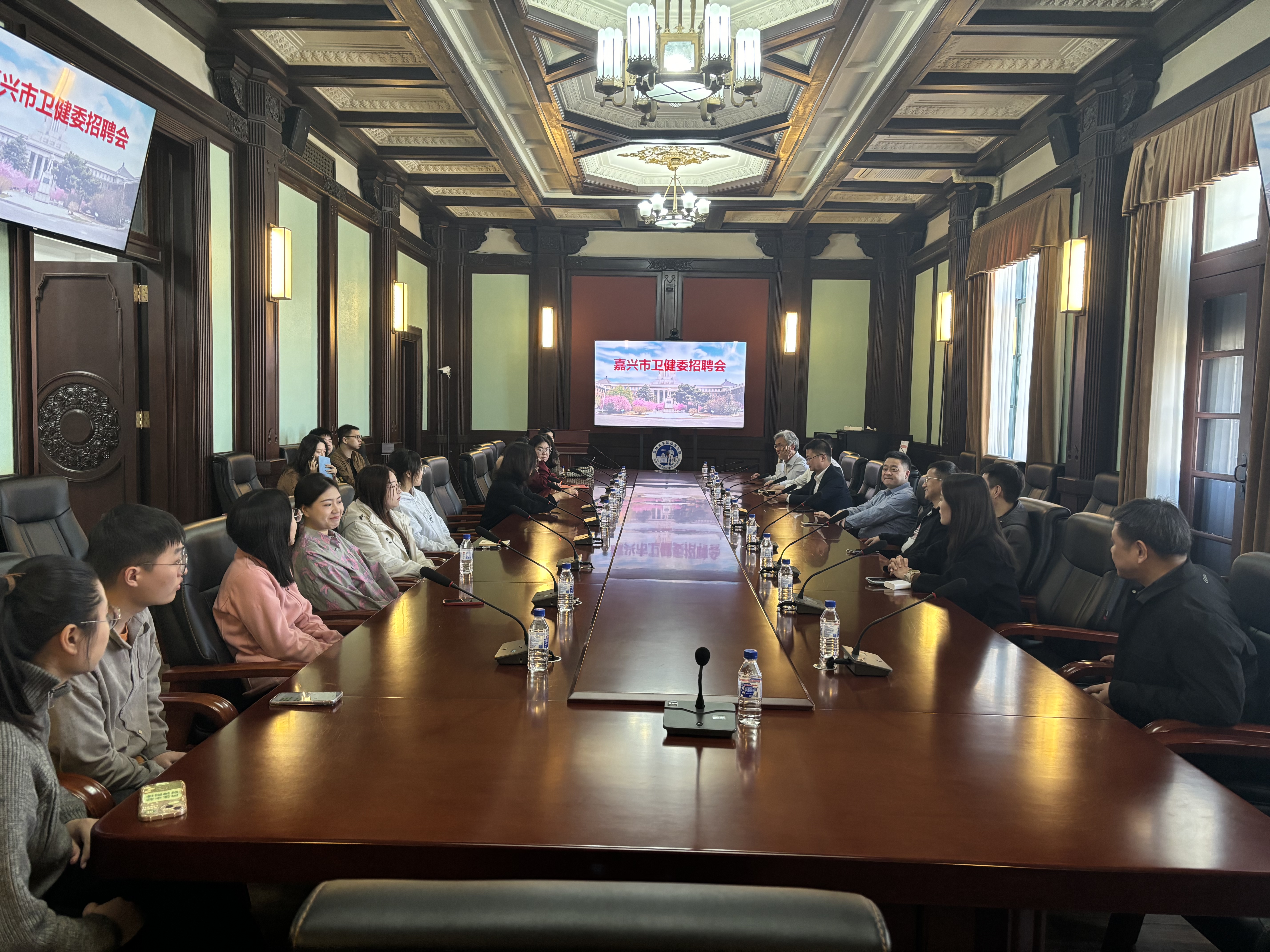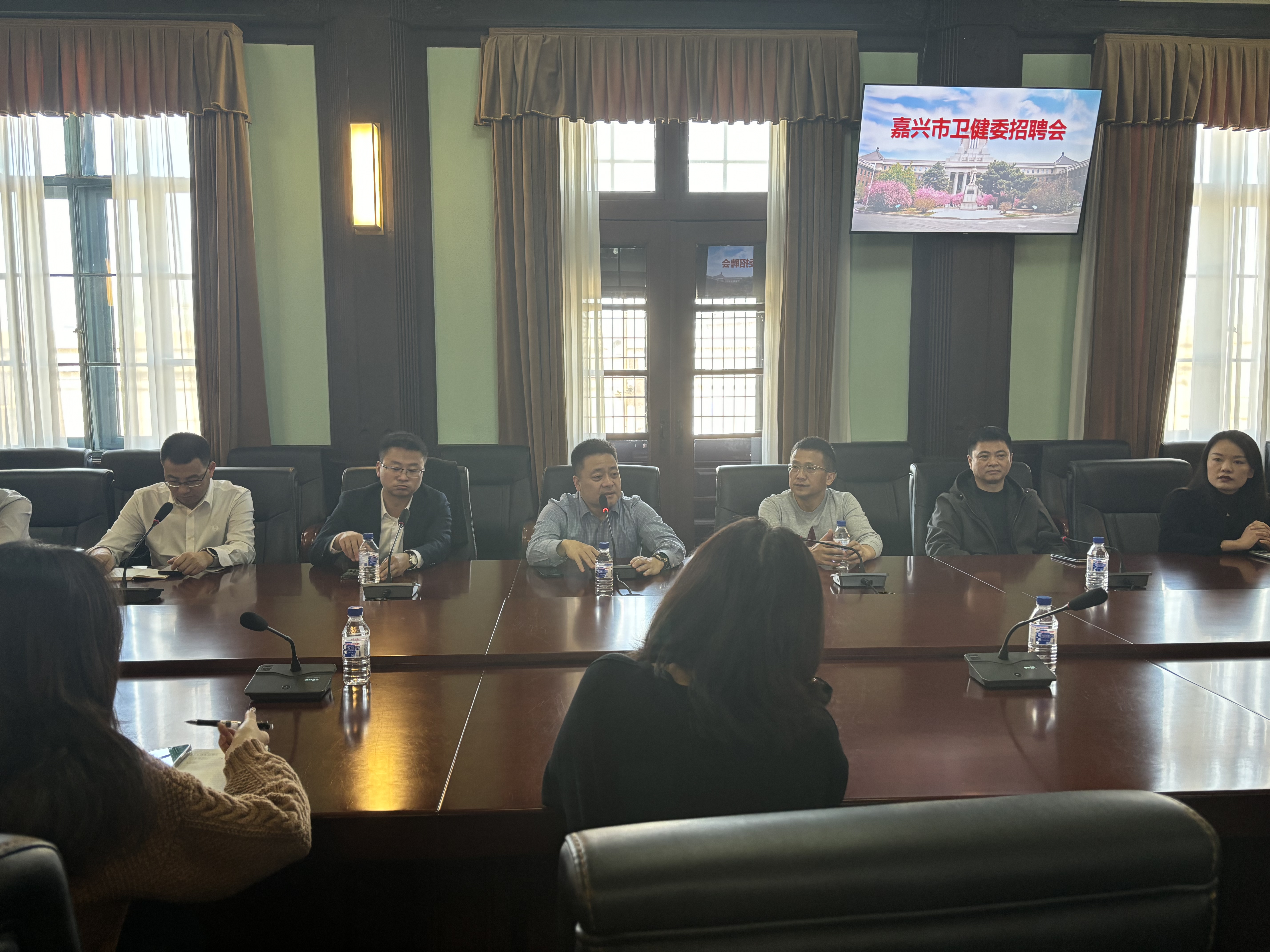 综合办公室主任丁红枫首先进行发言,对嘉兴市各卫健委及各医院领导的到来表示热烈的欢迎,并介绍了我院的人才培养政策,学生科研学术情况,接着双方重点就产学研合作、博士后科研站建设、实践教学基地建设、学生培养与就业、文化活动、奖助学金等方面进行了深入交流。