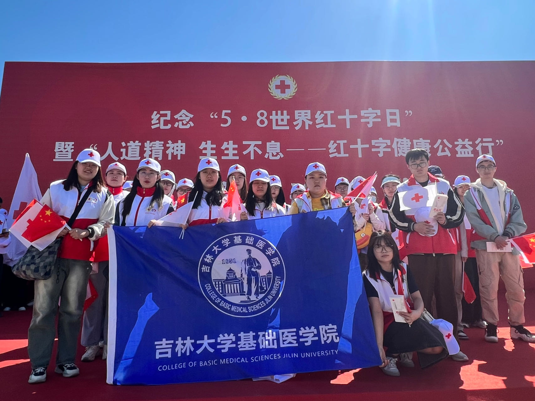 为弘扬“人道、博爱、奉献”的红十字精神,动员更多社会力量参与和支持红十字事业,5月8日,在第77个“世界红十字日”之际,吉林省遗体捐献志愿者服务队、羞羞漫画 “基础医学之光”志愿者协会一行40余人,来到长春市雕塑公园参加吉林省红十字会主办的“纪念‘5·8世界红十字日’暨‘人道精神,生生不息——红十字健康公益行’宣传义诊活动”。