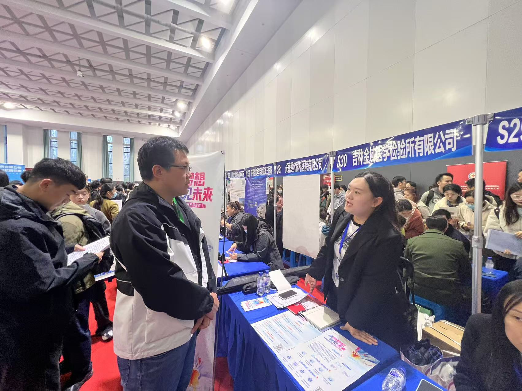 为了进一步加强学生的就业指导与服务,帮助学生更好地了解就业市场,提升求职技能,我院积极组织学生参加2025届秋季双选会。同时为切实提升就业质量,在双选会前学院迅速成立就业工作领导小组,专门负责组织学生参与双选会事宜。小组成员多方挖掘就业信息,积极与企业、校友等各方联系,为学生争取更多的就业机会。他们不断优化就业措施,为毕业生精准推送就业信息。通过对就业市场的深入调研和分析,工作领导小组为学生提供了针对性的就业指导,帮助学生更好地了解就业形势和自身优势,明确职业发展方向。在双选会当天,学院安排专人负责组织学生乘车及有序入场,确保学生能够顺利参加双选会。学院党委副书记李东洋书记、研究生辅导员孙佳钰老师也在现场为学生提供指导和帮助,解答学生在求职过程中遇到的问题。