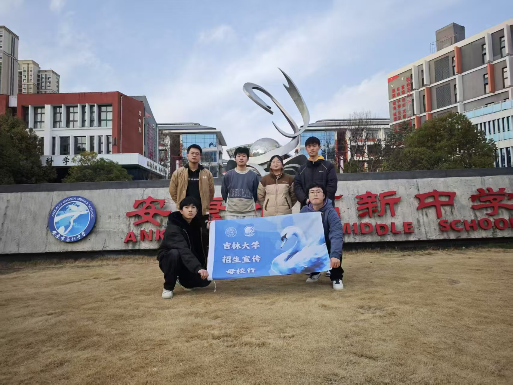 最后,团队成员们纷纷与自己的母校进行合影留念,标志着宣讲活动的圆满结束!