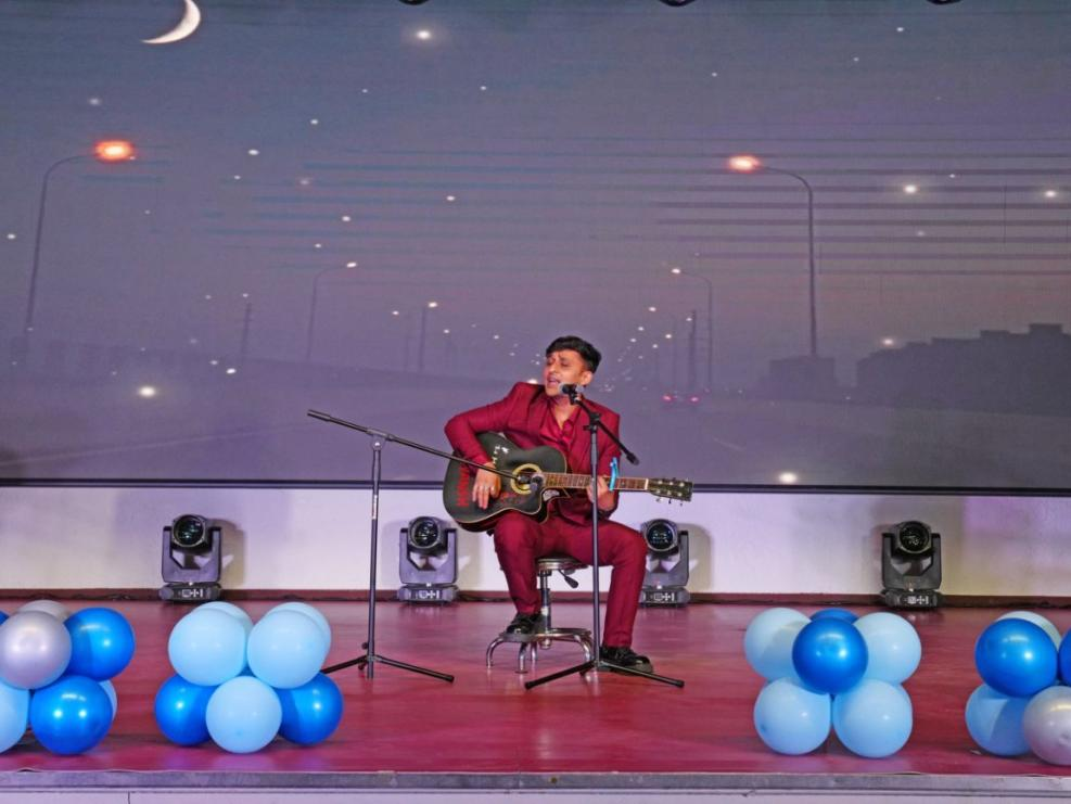 2019级MBBS毕业生普里扬什带来了吉他弹唱《graduation parody》,歌曲风格热情似火,具有独特的异域风情,让观众沉浸在欢快的节奏中,现场的掌声与欢呼声此起彼伏。