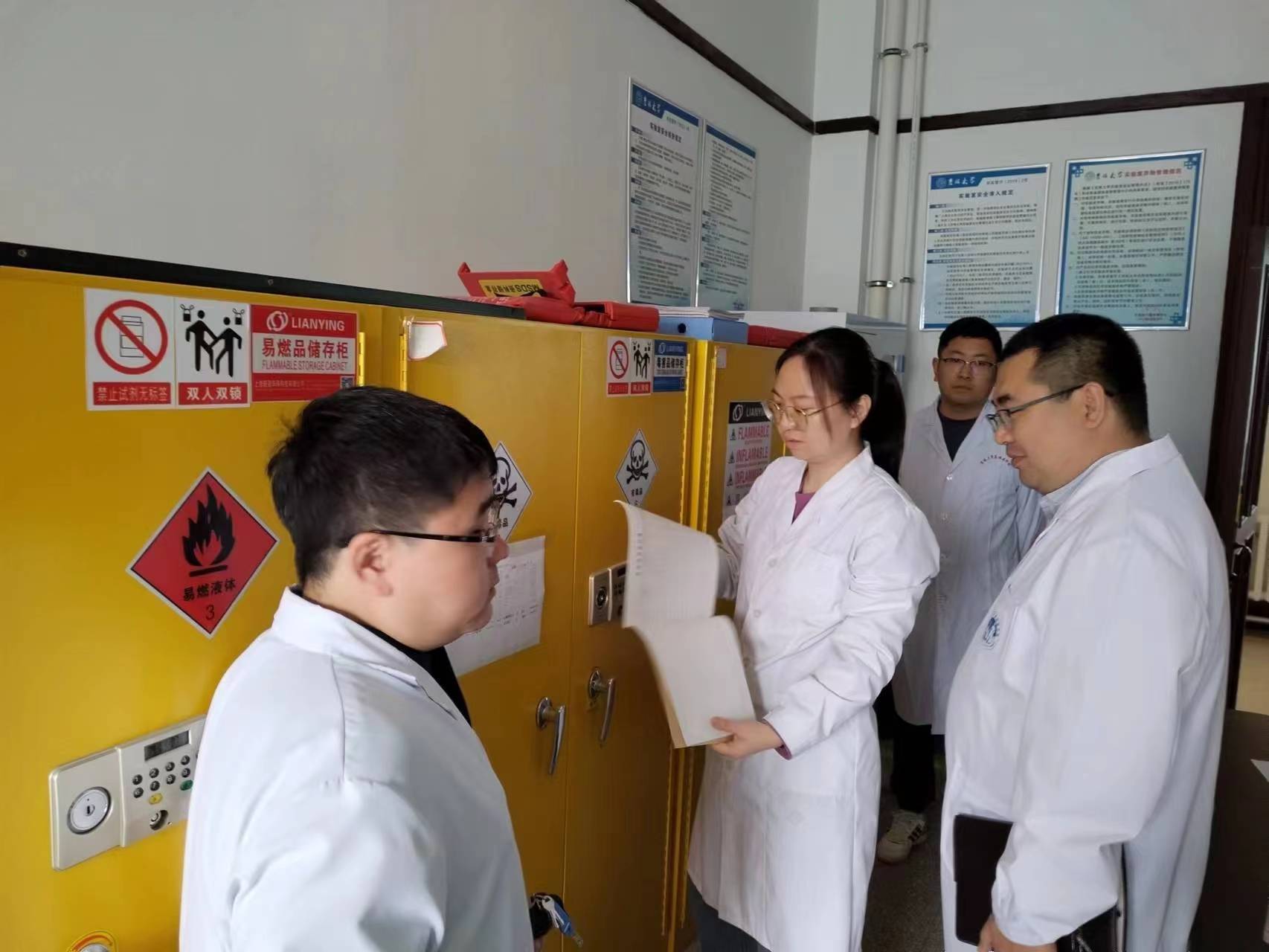 本次检查对学院科研实验室,重点对各学系、实验中心的实验室、办公场所的危化品管理,废液及废弃物的处置,设备设施用电安全及实验室日安全检查记录,水电气使用情况,高温高压设备的使用记录等情况进行了全面检查。针对检查中发现的问题,现场下发整改通知单,要求限期整改,确保各项安全措施落到实处,隐患整改落实到位。