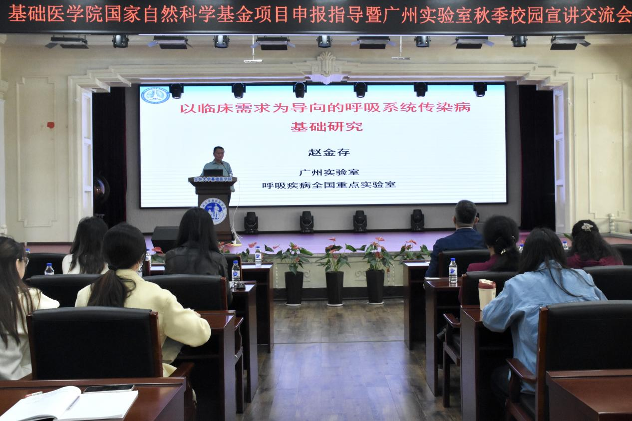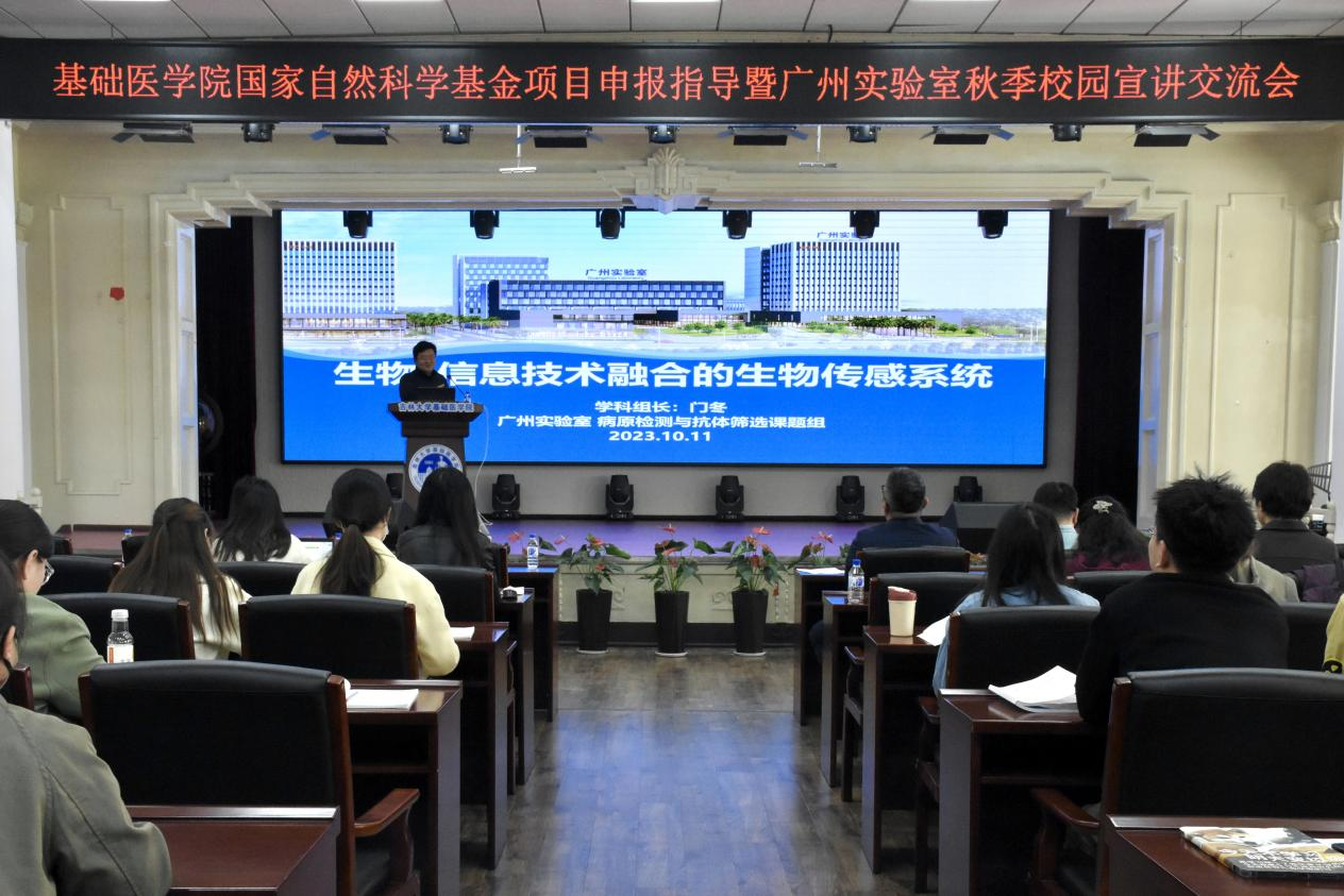 国家自然科学基金项目申报指导暨广州实验室秋季校园宣讲交流会”,会议邀请广州实验室赵金存研究员、门冬研究员及陈继征研究员做专题讲座。我院王放院长、王晓荣书记、刘海岩副院长等领导及学院教师与研究生共150余人参会。