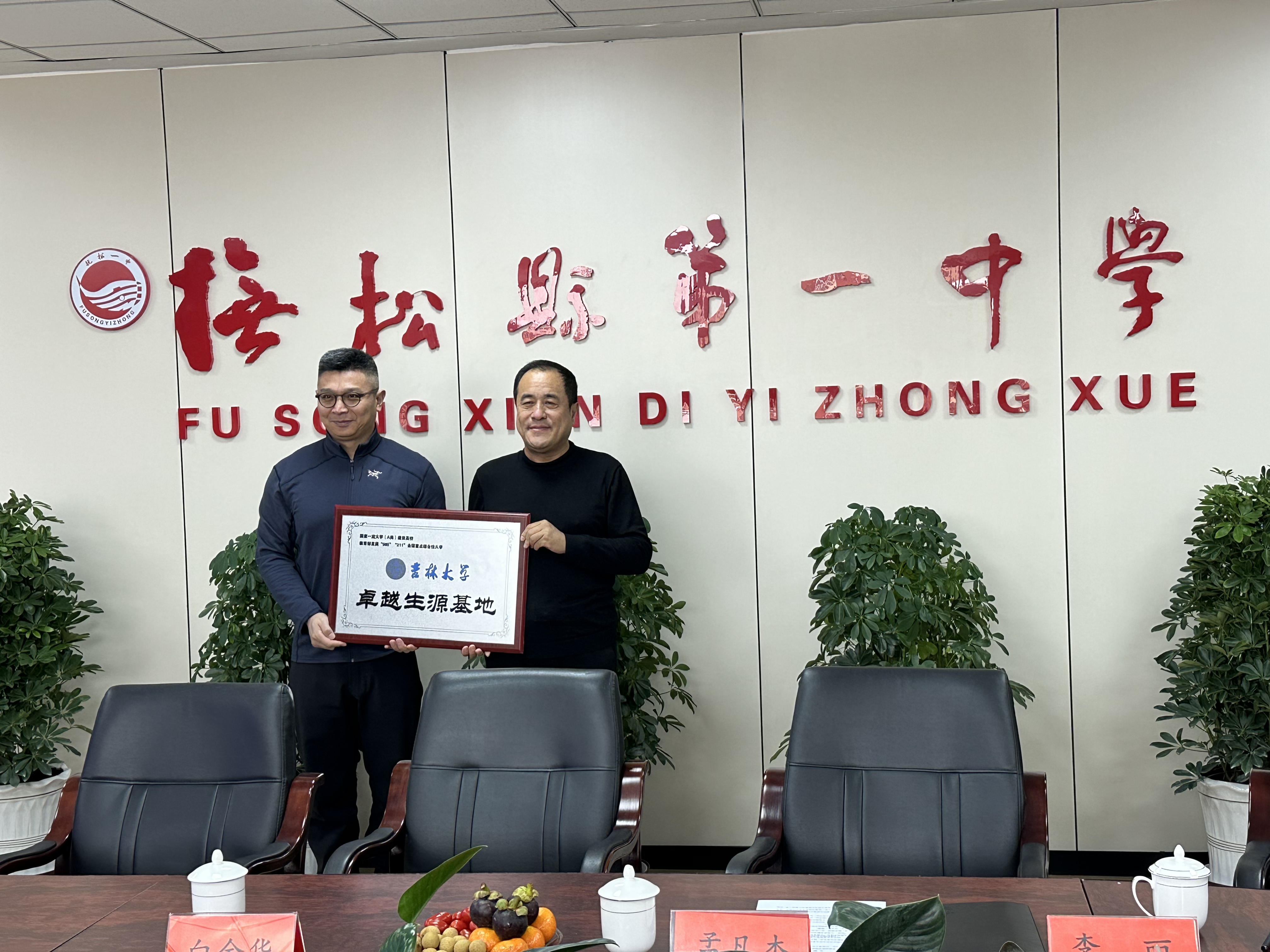 卓越生源基地”授牌仪式。抚松县第一中学党委书记孟凡杰、校长王永志、校领导班子全体成员以及班主任代表等出席了活动。
