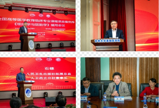 及白求恩医学部的辉煌历史,并祝愿本次教材会圆满成功。石雄董事长在致辞中介绍了贯彻落实习近平总书记关于教育的重要论述和全国教育大会精神,贯彻落实教育部《高等学校课程思政建设指导纲要》开展全国高等医学教育临床医学专业课程思政案例库建设的必要性、重要性及意义。王放院长介绍了组织学与胚胎学系的创建历程以及在课程和教材建设中取得的成果。