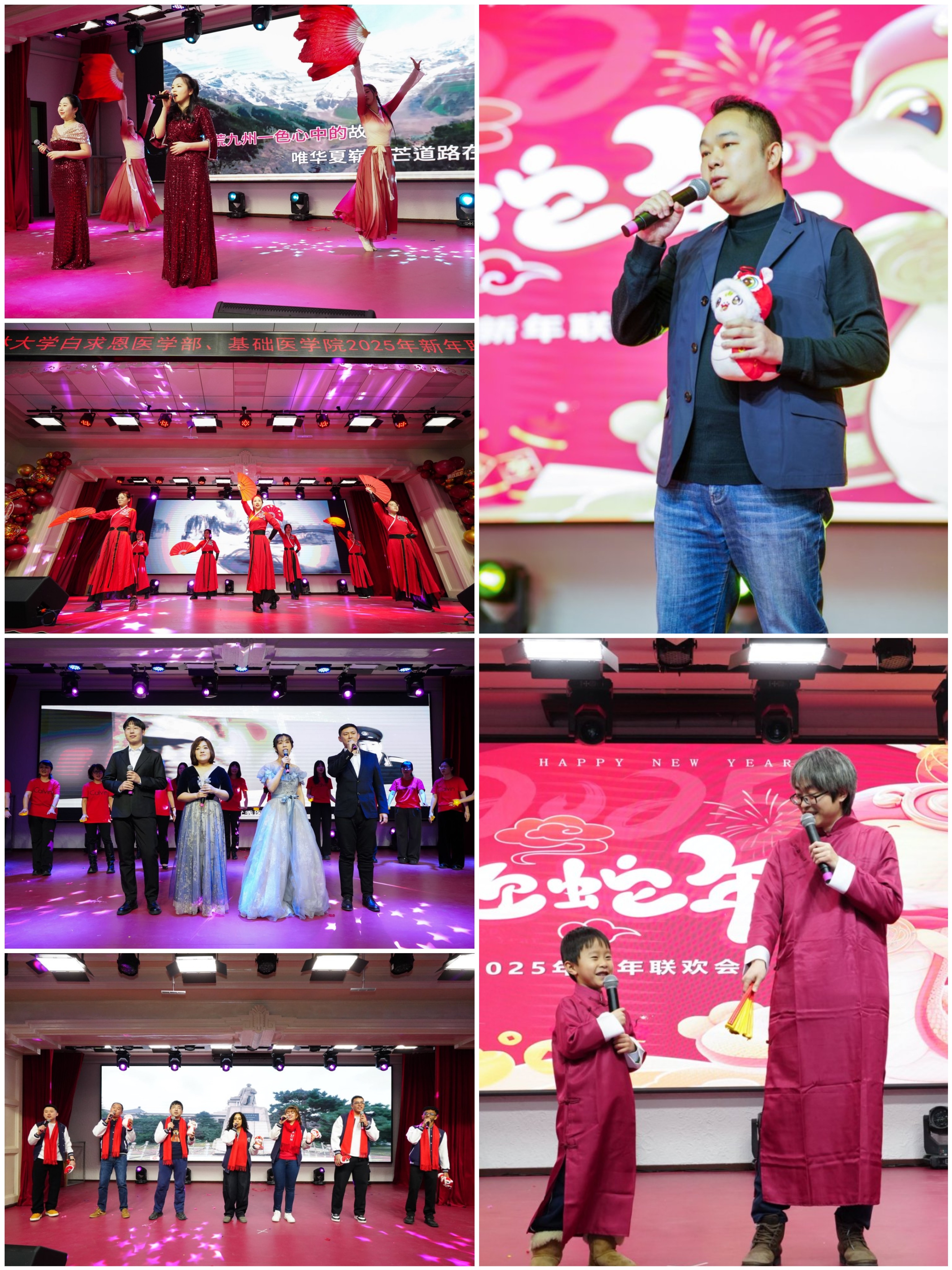 联合在基础楼二楼报告厅举办2025年新春联欢会,学部及学院现任、历任领导班子成员、部分退休老领导、学院合作单位负责人,师生代表共计二百余人欢聚一堂,共迎新春,欢庆佳节。