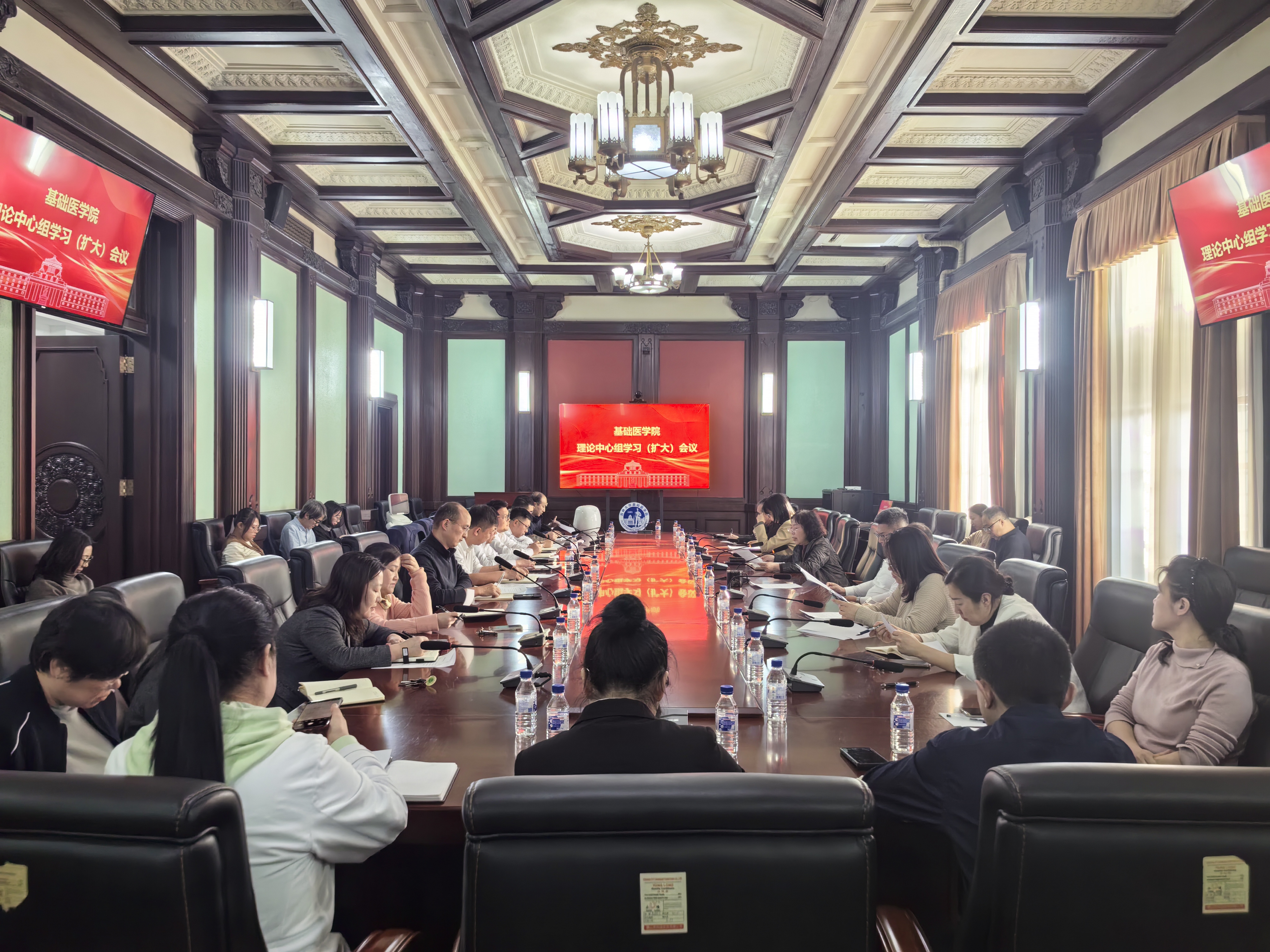召开党委理论学习中心组(扩大)会议。学院党委委员、处级党员领导干部、各学系(中心)主任、教工党支部书记参加会议。会议由学院党委书记王晓荣主持。