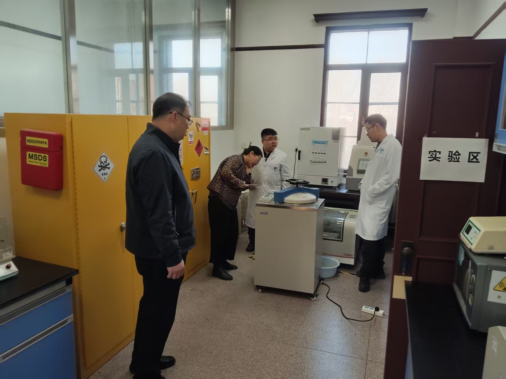 本次检查主要针对学院科研实验室、实验动物中心、基础医学教学实验中心等场所进行了实地踏查,重点对危化品的分类、储存及使用情况,高温高压仪器设备使用情况,水电气使用情况,消防器材配备情况,消防安全疏散通道安全情况,实验废弃物处置情况等进行逐一检查,对检查发现的隐患和问题进行现场反馈。