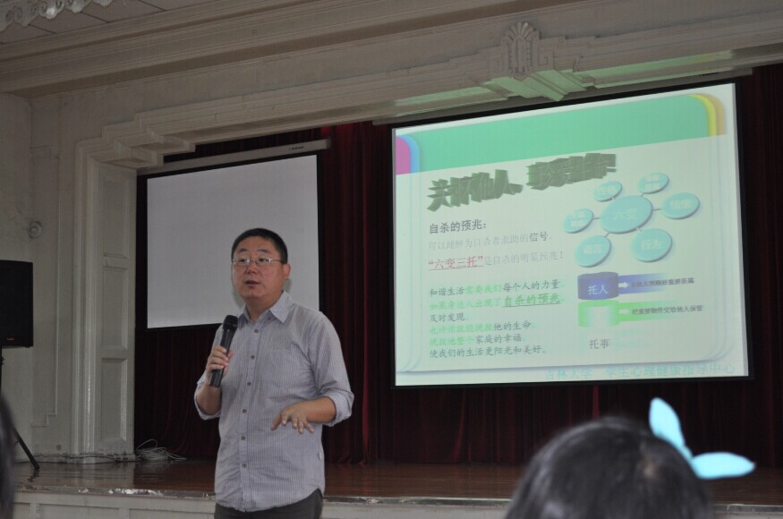 在学院二楼多功能报告厅举办了一场精彩的心理健康教育讲座。本次讲座邀请的主讲人是校心理健康教育指导中心督导师胡远超博士。2014级全体研究生新生参加了讲座。本次讲座由研究生办公室主任丁红枫主持。