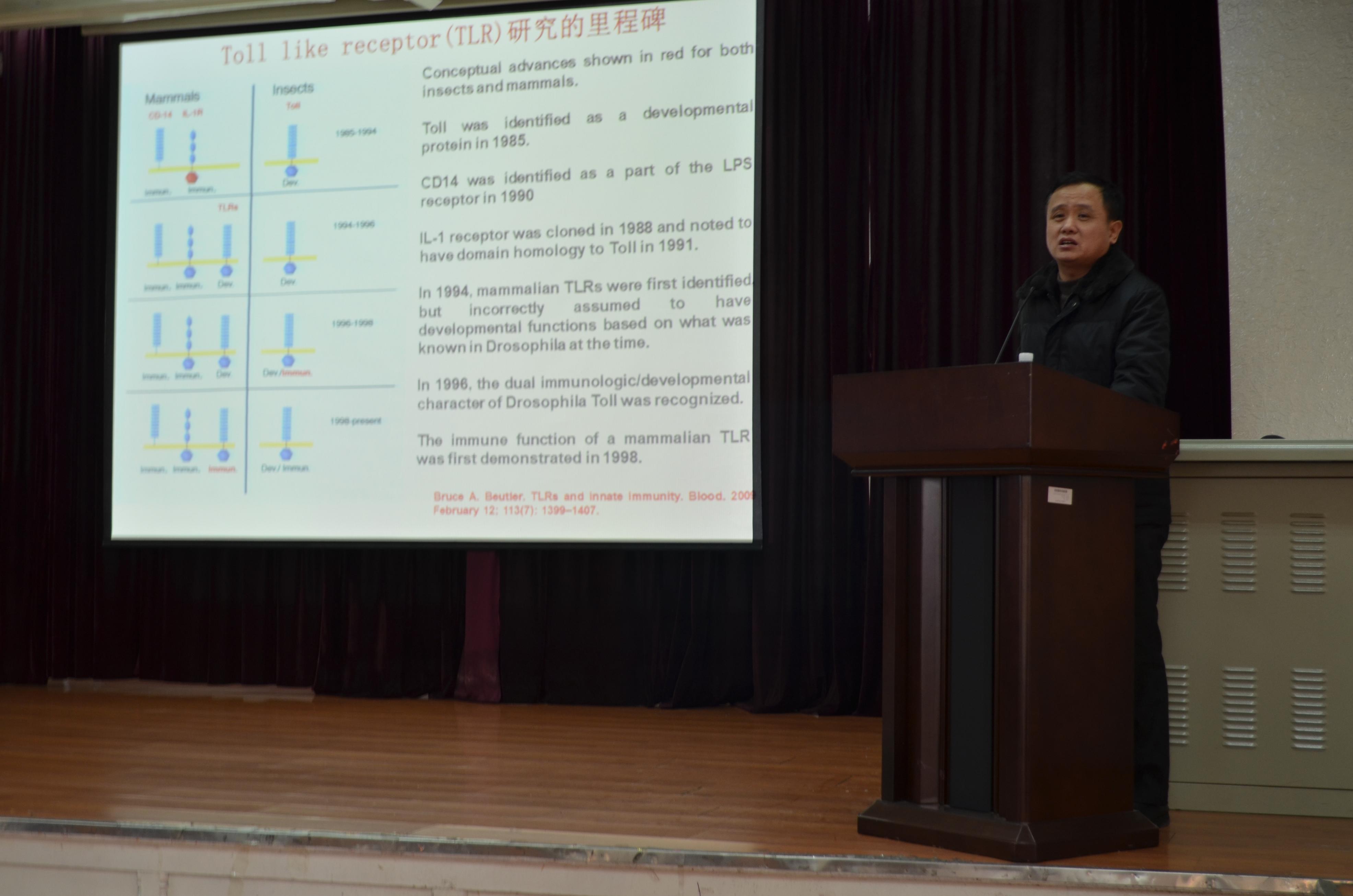 2012年12月31日,为推进我院2013年国家自然科学基金申报工作开展,帮助科研人员掌握申请书撰写要领,提高申请书的申报质量,科研办公室主管领导邀请我院免疫学系于永利、台桂香两位知名教授分别做了题为《国家自然科学基金面上项目,立住了吗???》和《如何写好国家自然科学基金课题申请书》的专题讲座。专题讲座由孙连坤院长主持。