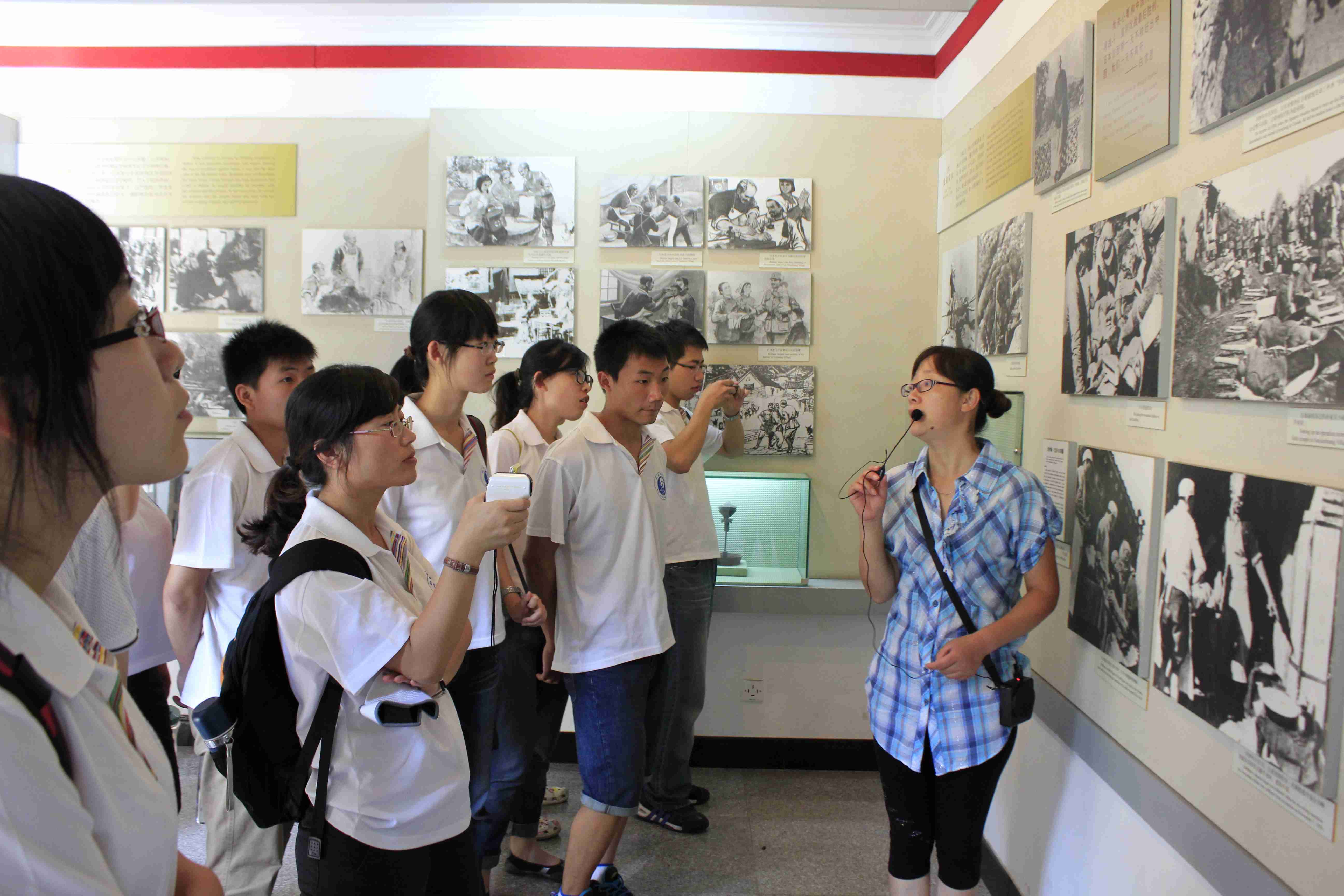 首先,队员们参观了白求恩纪念馆。纪念馆以大量宝贵的文字资料和照片讲述了诺尔曼·白求恩的一生。从坎坷的青少年时代到投身国际反法西斯前线,从奔赴中国抗日战场到战斗在晋察冀边区,从创办卫校到病逝唐县,在纪念馆工作人员的详细讲解下,队员们对白求恩有了更深的了解,又一次沐浴在白求恩“毫不利己,专门利人”的宝贵精神的光芒中。同时,纪念馆还展出了白求恩生前用过的英文打印机、显微镜、医用夹板的木工工具以及消毒锅等,再现了白求恩在艰苦的条件下仍执着追求医学的信念和高贵的品格。
