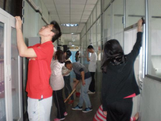为了增强团支部学生的感恩意识,进一步倡导尊师重道的良好风尚,加强老师与同学之前的沟通,表达对老师的敬仰,701008团支部于近日走进白求恩医学院基础楼病原生物学实验室,身体力行,帮助实验室老师完成室内清洁工作。同学们怀着一颗感恩的心,干劲十足。走廊、地面、柜子、门窗都被大家清扫的干干净净。此次活动受到老师们的一致好评。
