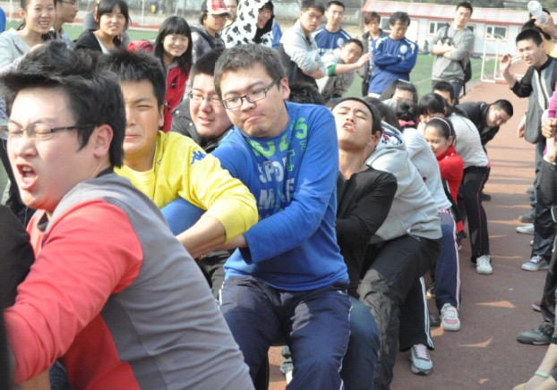 4月14日下午,白求恩医学院2012年文化节系列活动之趣味运动会拔河比赛在新民校区体育场举行。2009级和2010级五年制的全部14个班级参加了比赛。白求恩医学院党委副书记兼副院长苑锐、辅导员魏宇航到现场观看了比赛。