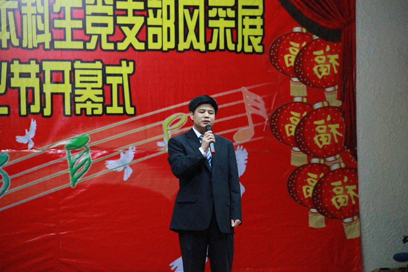 开幕式在国防生铿锵有力的军歌合唱声中拉开了帷幕。首先,屈英和发表开幕式致辞。他在致辞中强调要重视在文化节中展示我院学生风貌,进一步融洽师生关系,并且要在党支部风采展示中增强党支部活力,使每个党员在党支部建设中进步。随后,各年级党支部纷纷登上舞台,精彩的演出使场下掌声雷动,现场高潮迭起。本科生2008级第二党支部书记、2011年长春市十佳大学生、2011年羞羞漫画