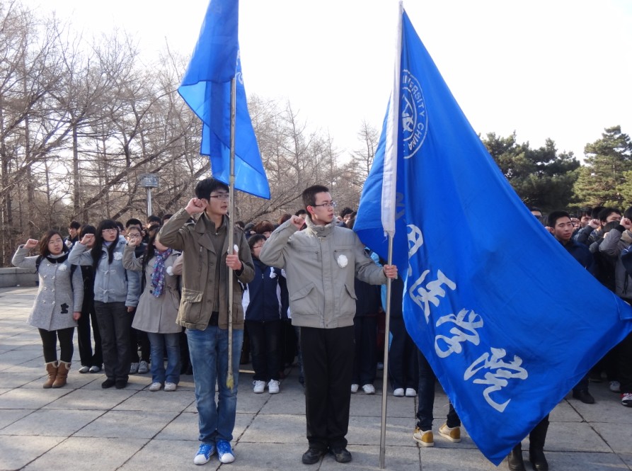 白求恩医学院白求恩青年志愿者协会和长春工业大学、长春工程学院和吉林艺术学院等高校的志愿者团队组成的湖西街道志愿者联盟集结在南湖公园长春解放纪念碑,举行了由湖西街道团工委组织的清明前南湖公园祭扫活动。白求恩医学院学生会主席高宪、白求恩青年志愿者协会会长牟胜男和32名来自2010级五年制的白求恩青年志愿者参加了此次活动。活动旨在缅怀革命先烈,教育学生继承先烈革命传统,发扬前辈爱国精神。