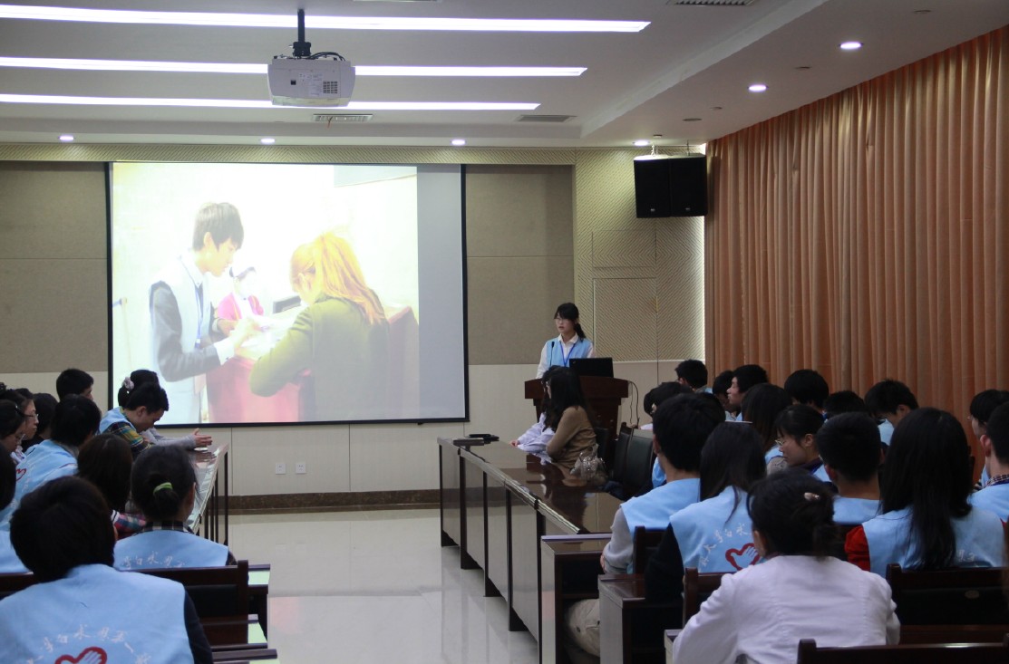 白求恩第一医院8号楼第十五会议室举行了白求恩青年志愿者吉大一院门诊义工志愿活动总结大会。吉大一院公益活动部主任刘芳、工作人员宋歌以及护士代表、陪检员代表,白求恩医学院辅导员魏宇航和五十余名志愿者出席了本次大会。