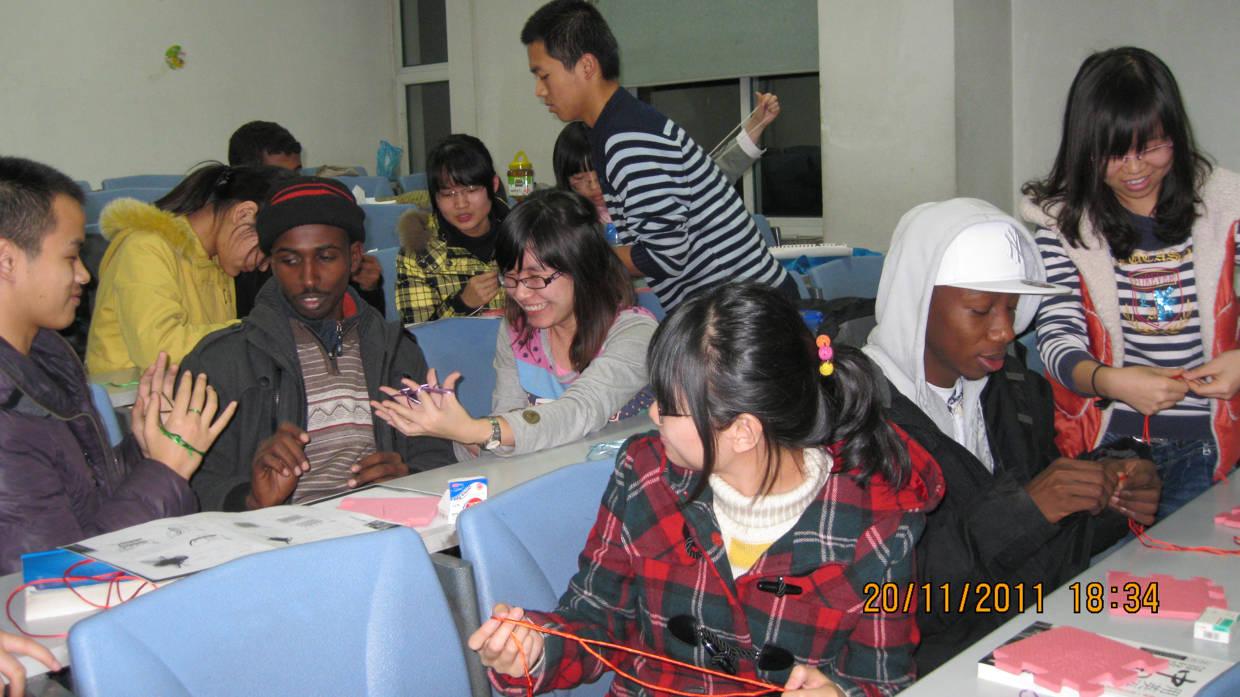 活动从中外学生的相互介绍中开始。随后,由编织协会成员演示了如何编织中国结,并细致的讲解了编织步骤。整个活动氛围轻松愉悦,使留学生们在异国他乡感受到了浓厚的文化氛围和温馨的友情。活动结束后,中外学生还互赠自己亲手编的中国结留作纪念。大多数同学都是首次参加这种活动,纷纷表示期待着下一次的欢聚。