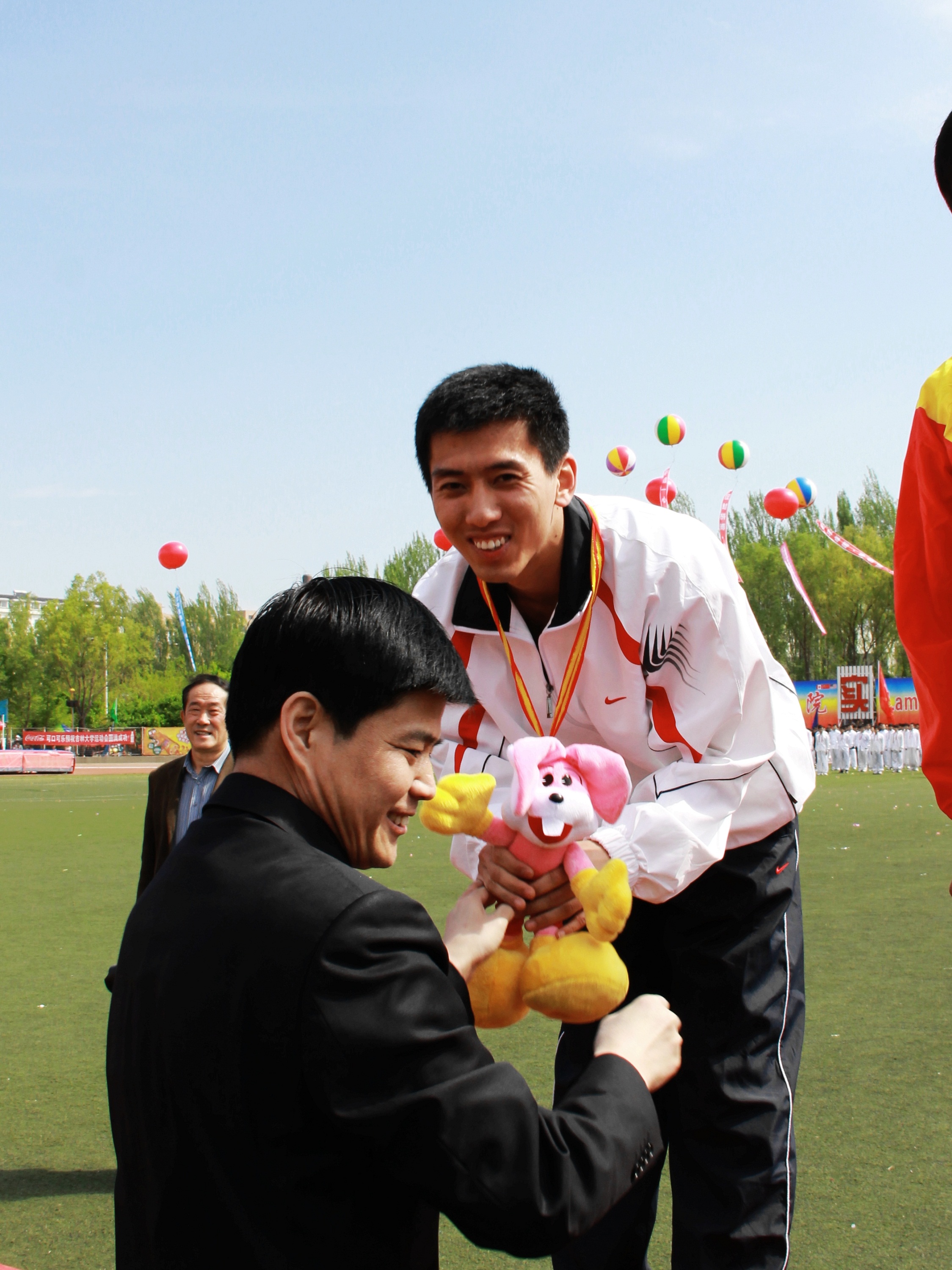 2007级的赵洪宇同学“老”当益壮,在铅球场上奋力掷出10.66米的好成绩,获得冠军。由新科四百米冠军周明铭领衔的男子4X400米接力队以3分47秒94摘得银牌。此外,周明铭还在男子百米飞人大战中获得第四名;2009级的殷立彬在女子铅球比赛中获得第七名。在集体项目中,也收获颇丰,师生接力获得第四名,女子4X400米接力获得第六名,女子“同心协力”获得第七名。至此,白求恩医学院学生取得了参加校运动会以来的最好成绩,加上本年度“阳光体育”各项赛事的积分,学院一举获得学生组团体总分第五名的历史最好成绩,并首次站到了校运动会团体总分的颁奖台上。