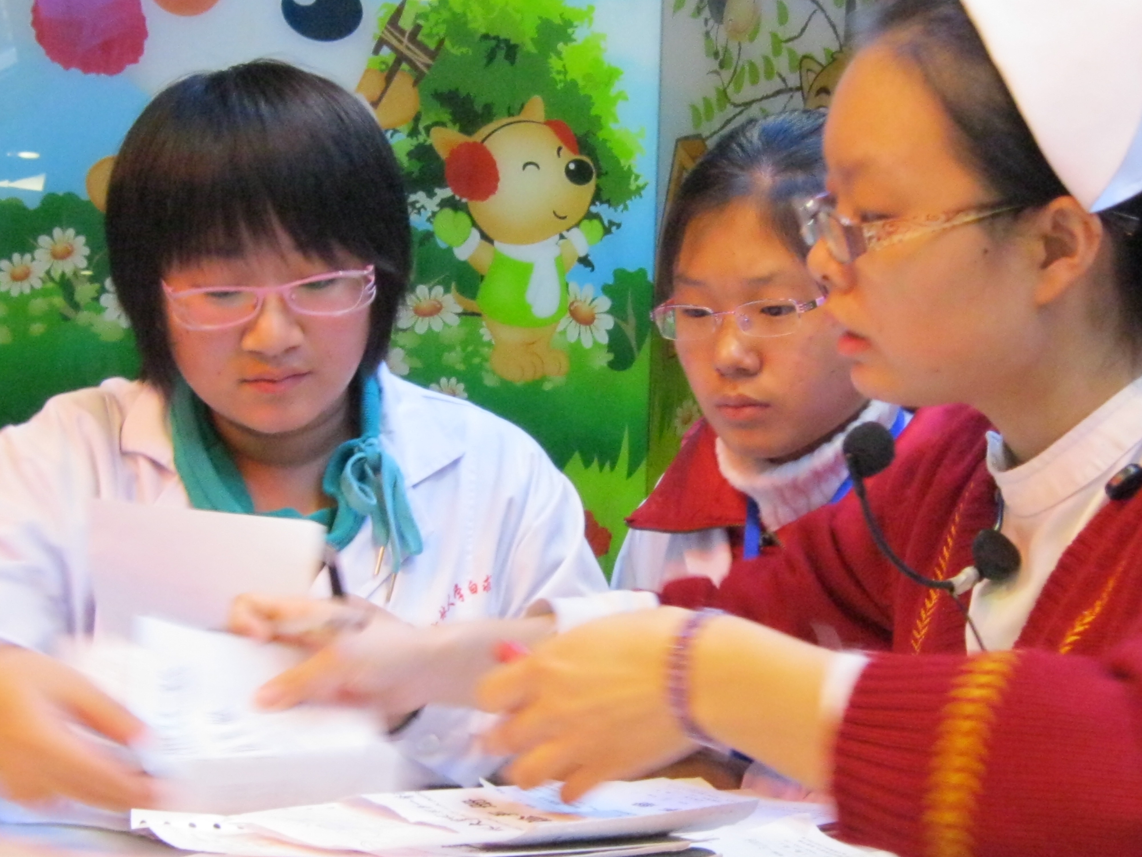 活动开始前,同学们都充满了期待。按照惯例,志愿者首先参观了医院的各个科室,然后到自己分配的科室进行临时工作。活动中,关世慧同学被分配到医院儿科,儿科患者特别的多,她积极主动的帮助医护人员及患者,忙碌之余,她体验到了作为一名医护工作者的辛苦。白求恩医学院党委副书记兼副院长苑锐来到医院看望了志愿者,在详细询问了志愿者的工作情况及收获后,他说:“做为一名医生,从一年级就开始走进医院,对医院的运转建立感性认识是十分有必要的。2010级长学制的学生第一次进入中心校区,在感觉中心校区文化的同时,学院还会创造更多的机会让同学们回到新民校区,感受医学的传统与白求恩精神。”
