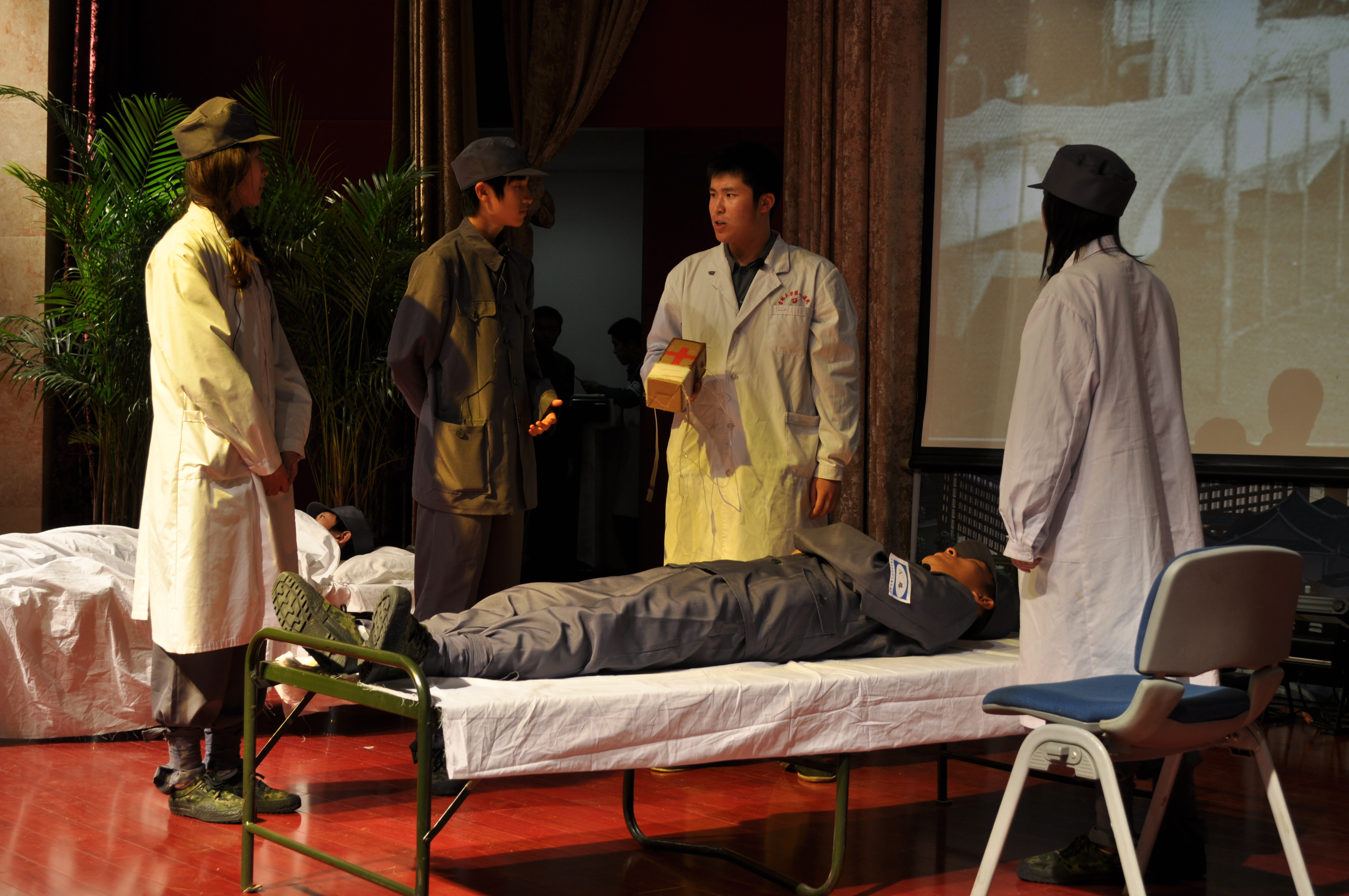 《白求恩》是我院学生自编自导自演的话剧,从不同的角度演绎了白求恩对伤员的认真负责、对医学的严谨求实、对战友的手足情谊以及对中国抗日战争做出的突出贡献。同学们对白求恩精神的深刻领悟和精彩演绎震撼了现场的观众,细腻的表演技巧、真实的情感投入、振奋的经典旁白,博得了经久不息的掌声。观演的同学纷纷表示作为白求恩的传人一定会在白求恩精神的感召下,求真务实、严谨细致,秉承白求恩品质,传承白求恩精神,早日成为祖国建设的栋梁之才。