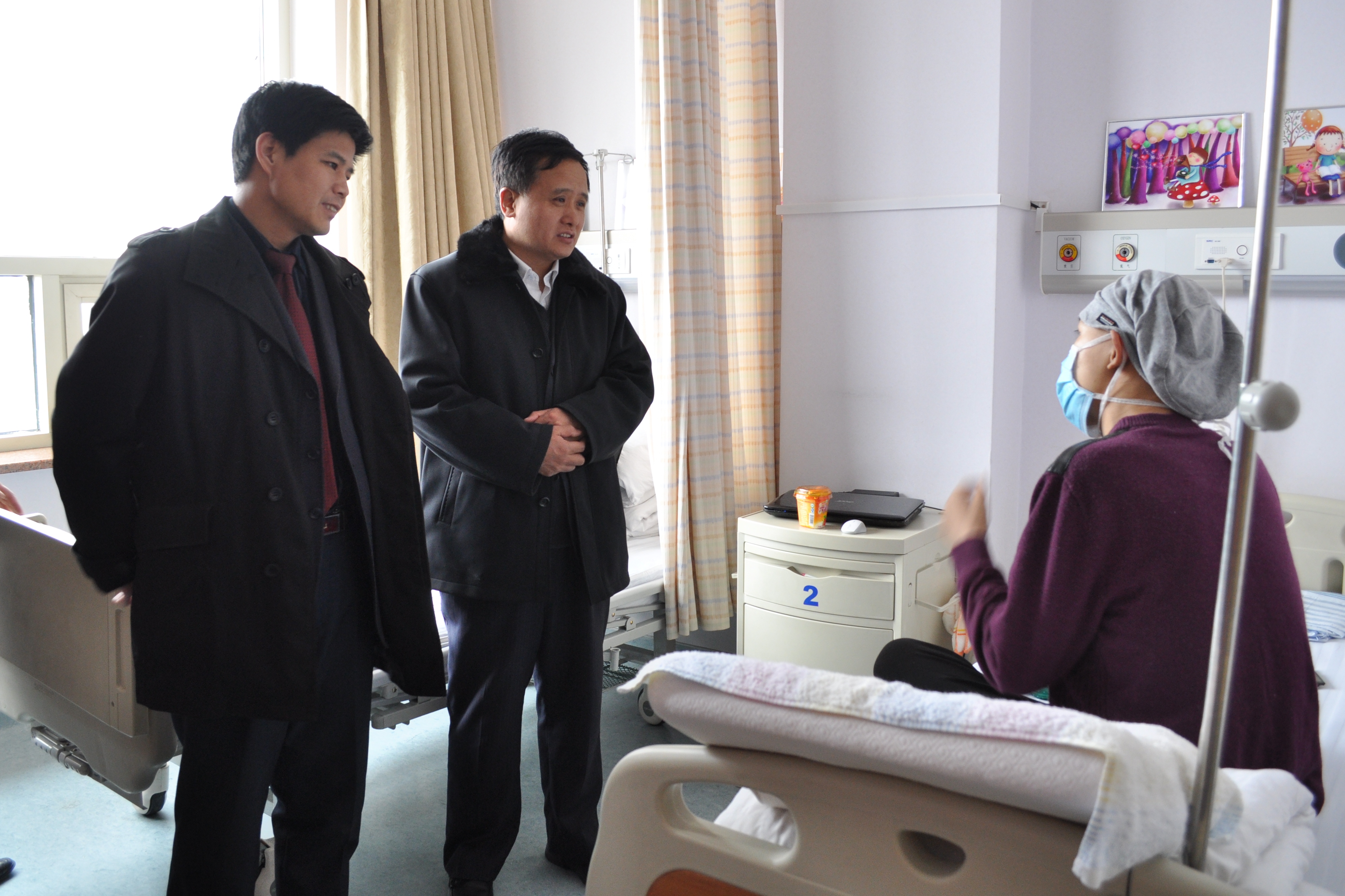 3月30日,学院主要负责人来到白求恩第一医院血液肿瘤科,看望了冀卓异,鼓励冀卓异同学勇敢面对疾病,配合医生治疗,有什么困难要与学院联系,学院一定会尽全力帮助协调解决,并将募集的全部善款交到了冀卓异的父母手中,家长非常感谢白求恩医学院师生对冀卓异关爱。冀卓异也表示不辜负大家希望,积极配合治疗,争取早日康复。