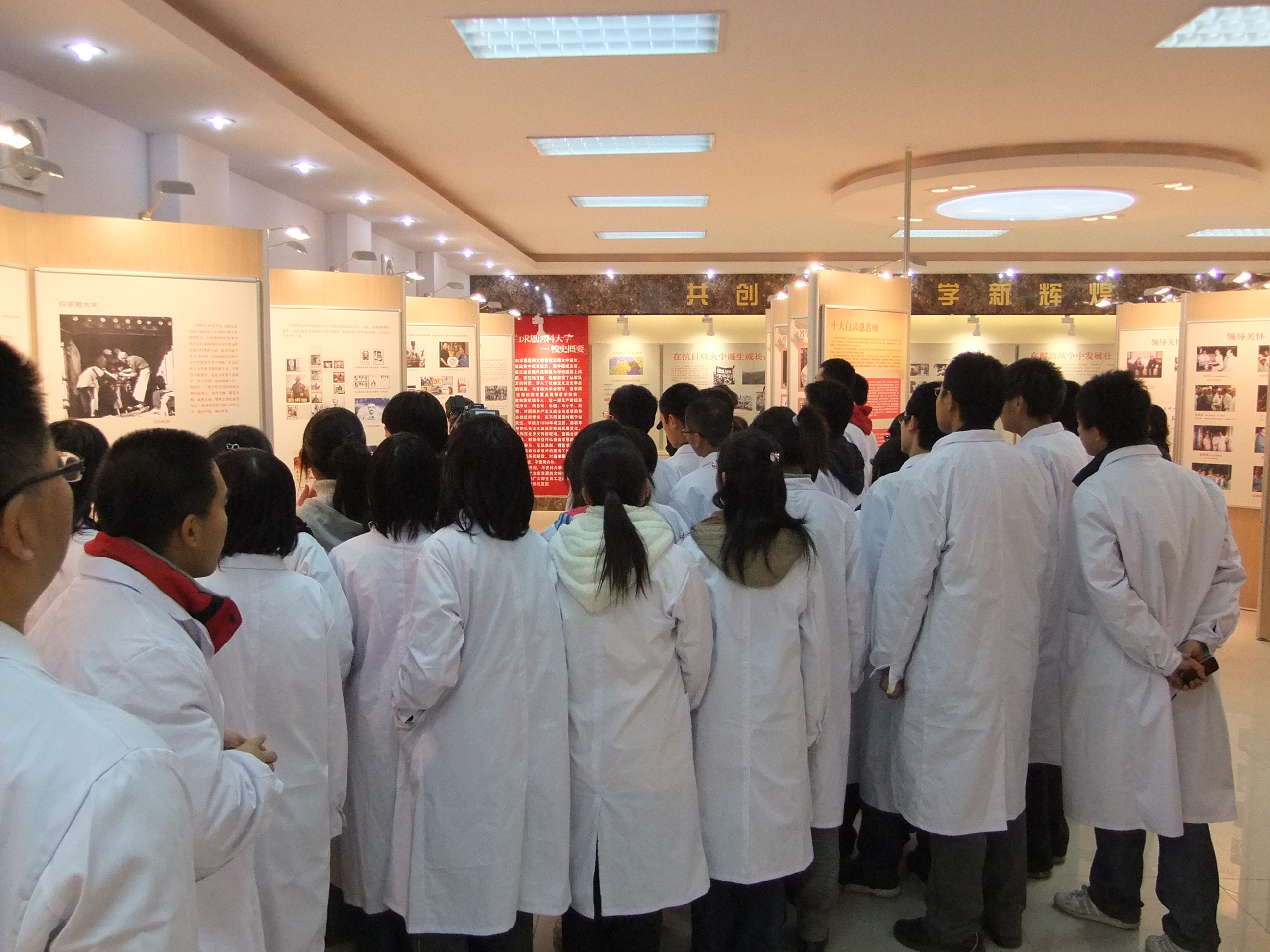 近半个小时的时间里,白求恩医学班的同学们在讲解员娓娓动听的声音当中,感受了70年前战火纷飞中诺尔曼·白求恩伟大的国际主义、共产主义精神;毫不利己、专门利人的无私奉献精神;对技术精益求精,对工作极端负责的精神;对人民、对同志极端热忱的精神……随后同学们又参观了我校医学70年教学、科研、医疗的发展史,感受了医学生丰富多彩的校园文化活动和社会实践活动,领略了我校医学名师、名医的风采。参观结束后,在白求恩塑像前,白求恩医学班全体同学在辅导员助理王聪同学的带领下,进行了庄严的医学生宣誓。