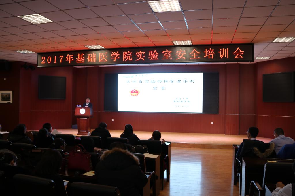 病原微生物学系主任王丽教授,病理生理学系副教授苏静副教授分别做了关于实验室生物安全和吉林省实验动物管理条例宣贯的报告。