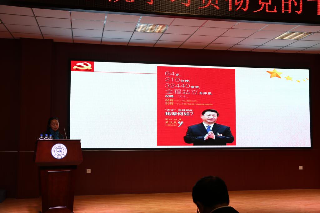 会上,郑爽书记围绕十九大精神做了四个方面的辅导报告:一是与时俱进地确定了新时代历史方位,二是充满自信的调整了新时代的战略安排,三是继续推进全面从严治党的制度化和常态化,四是不断把学习贯彻十九大精神引向深入。郑书记讲到十九大的召开明确宣示了中国未来仍将继续坚持走中国特色社会主义道路,表明中国特色社会主义必须结合实践与时俱进不断发展,要注意应对已在变化和正在变化的社会矛盾,明确中国仍然处于社会主义初级阶段。