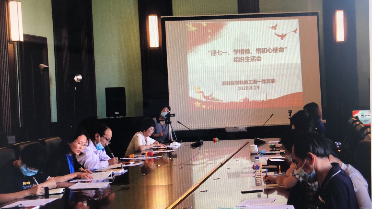 教工第一党支部召开了“迎七一、学楷模、悟初心使命”专题组织生活会。学院党委书记郑爽列席会议,支部全体党员参加了支部大会。