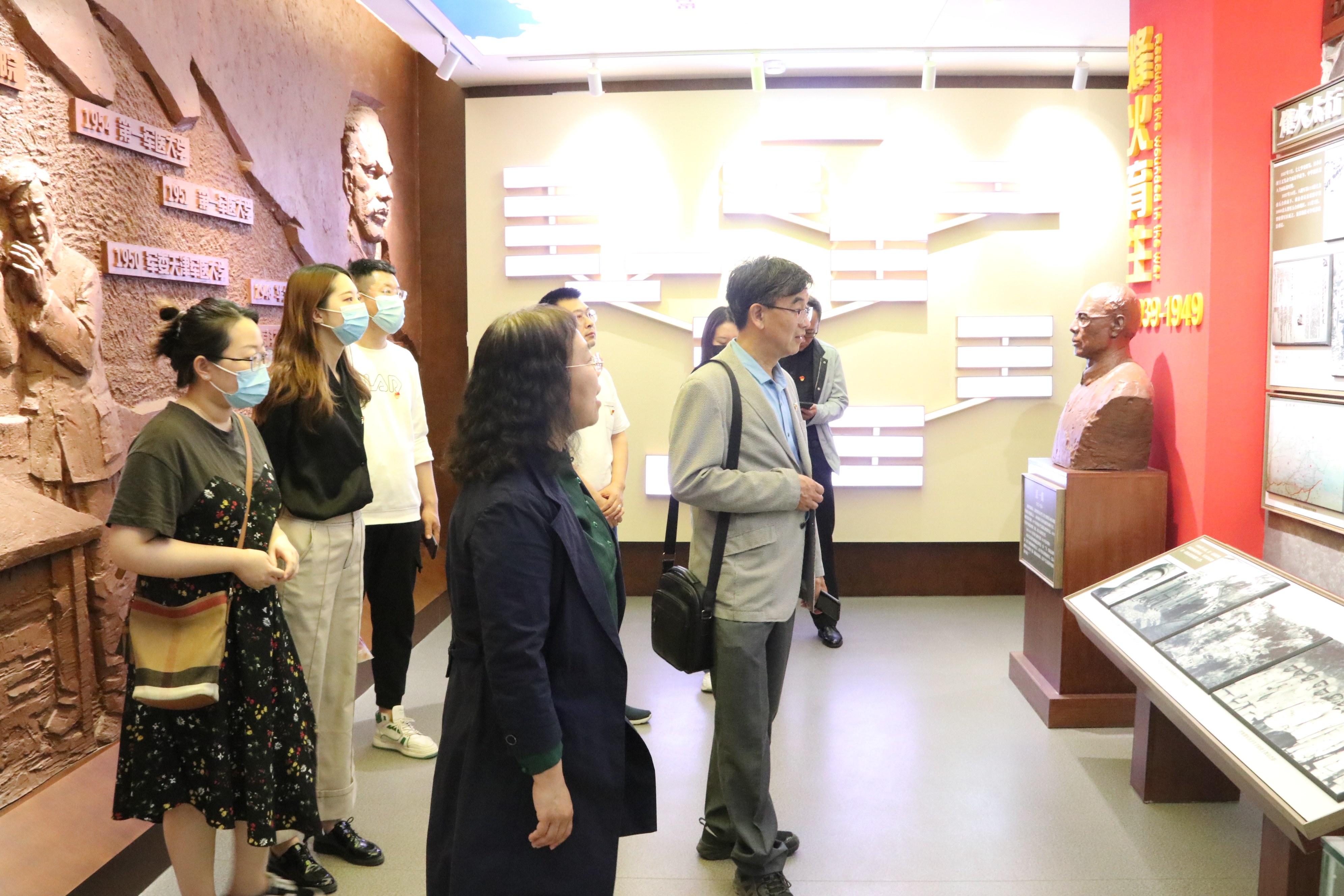 大家跟随着讲解员参观了纪念馆,一楼主要是校史沿革图以及整个学校的建校经历,1939年的老白校在烽火中诞生,在解放战争中成长,在和平建设时期稳步发展,了解了学校自1938年的医疗训练队经多次发展合并为现羞羞漫画