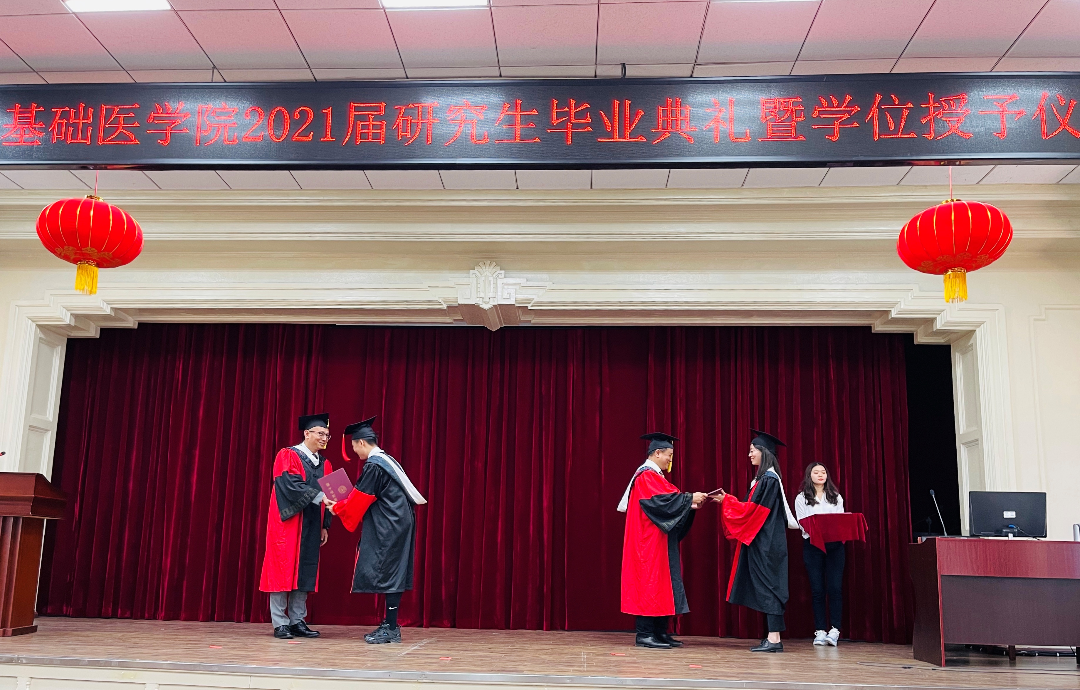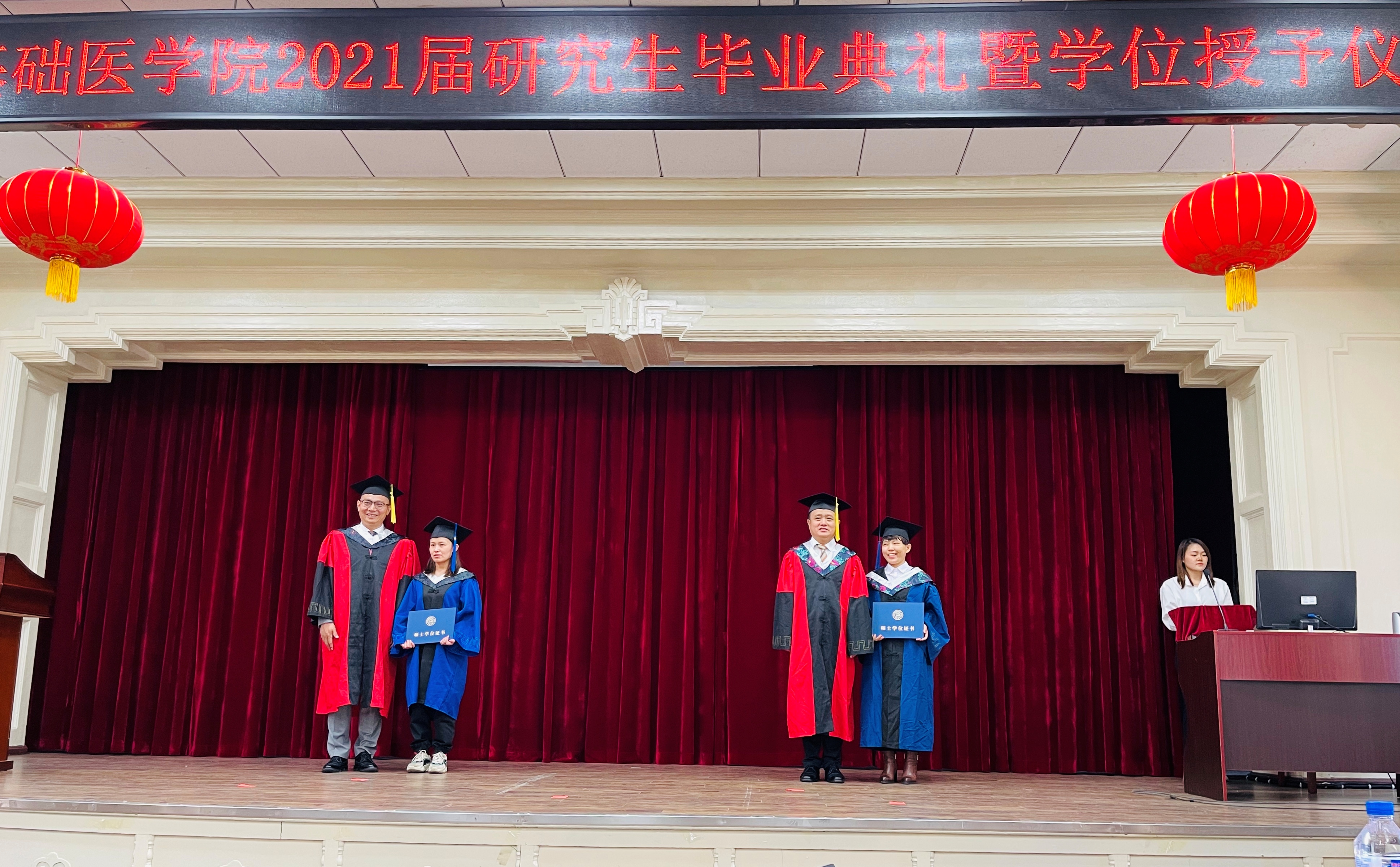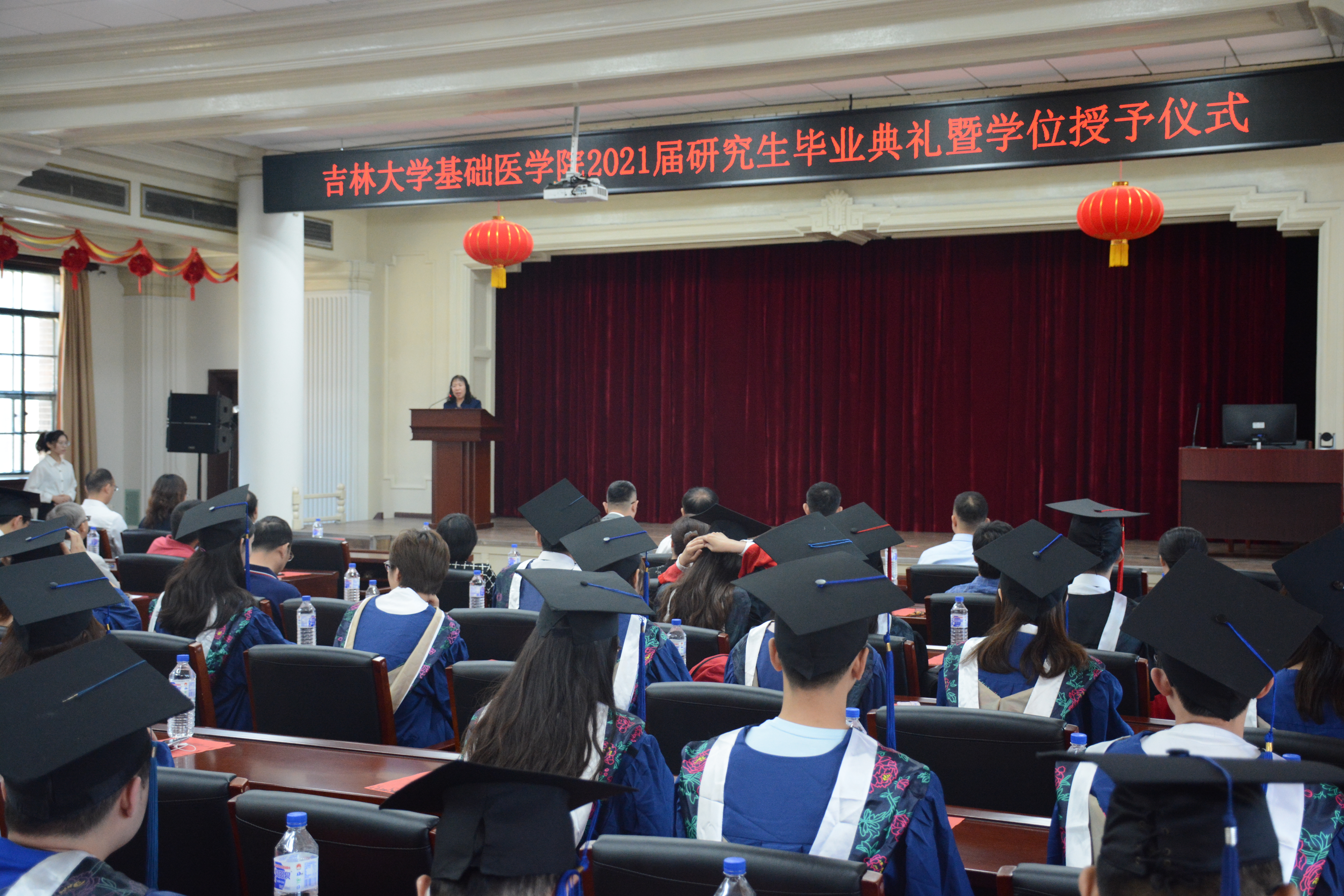 二楼报告厅隆重举行。院长王放、党委书记王晓荣及班子全体成员、基础医学学位评定分委员会主席孙连坤,各学系教研室主任、党支部书记、研究生指导教师、研究生办公室老师和全体毕业研究生出席。毕业典礼由副书记曹国丽主持。