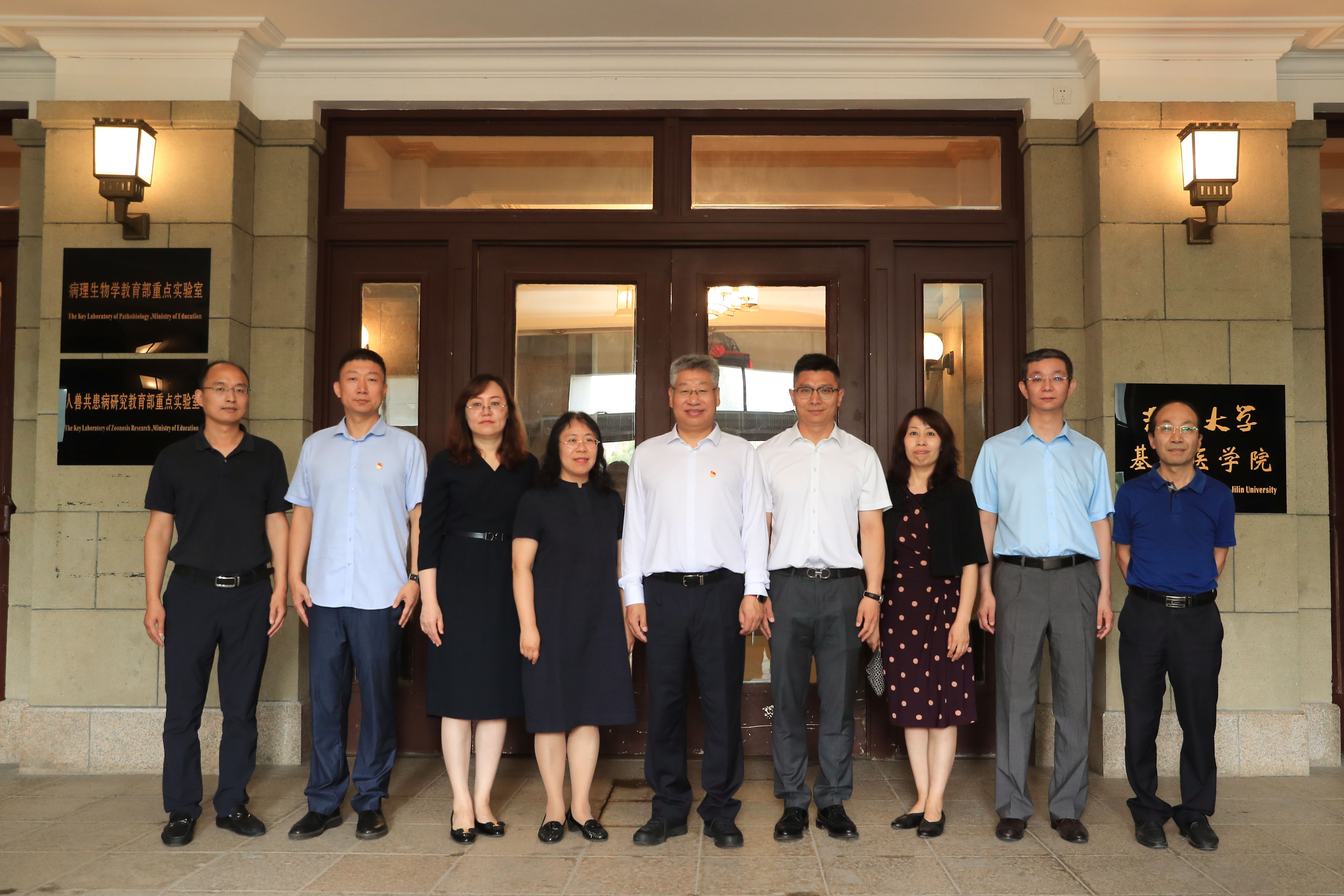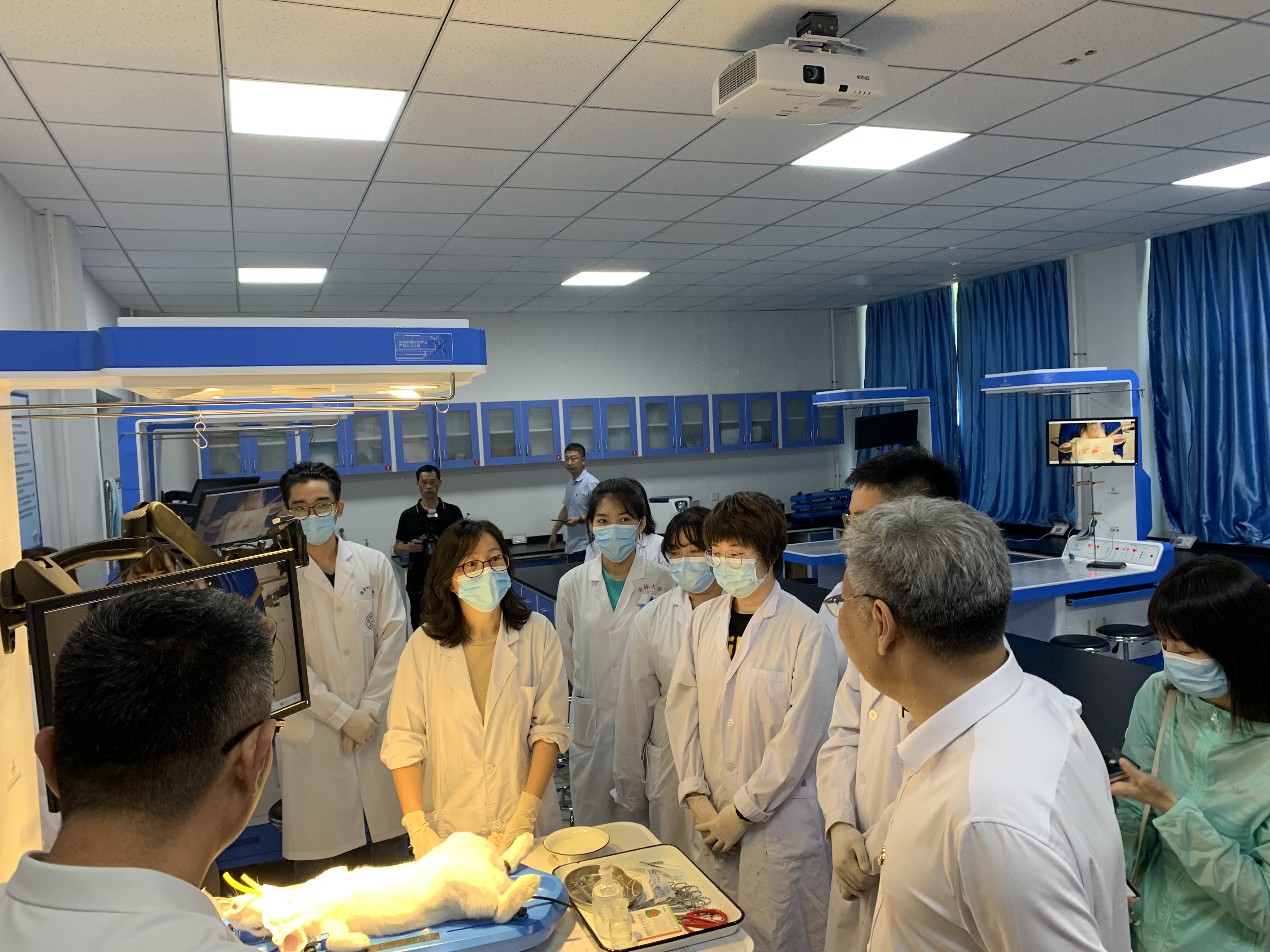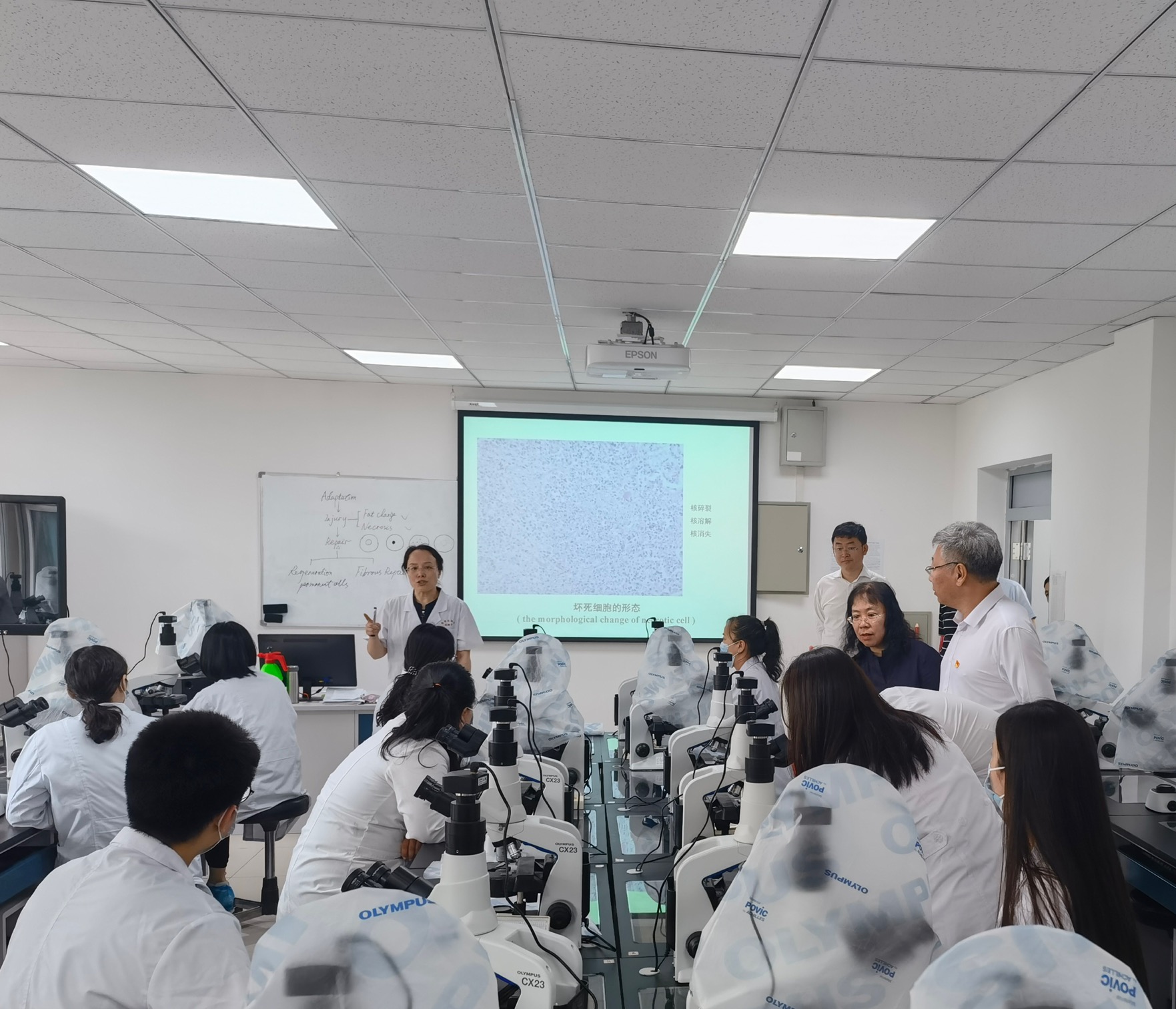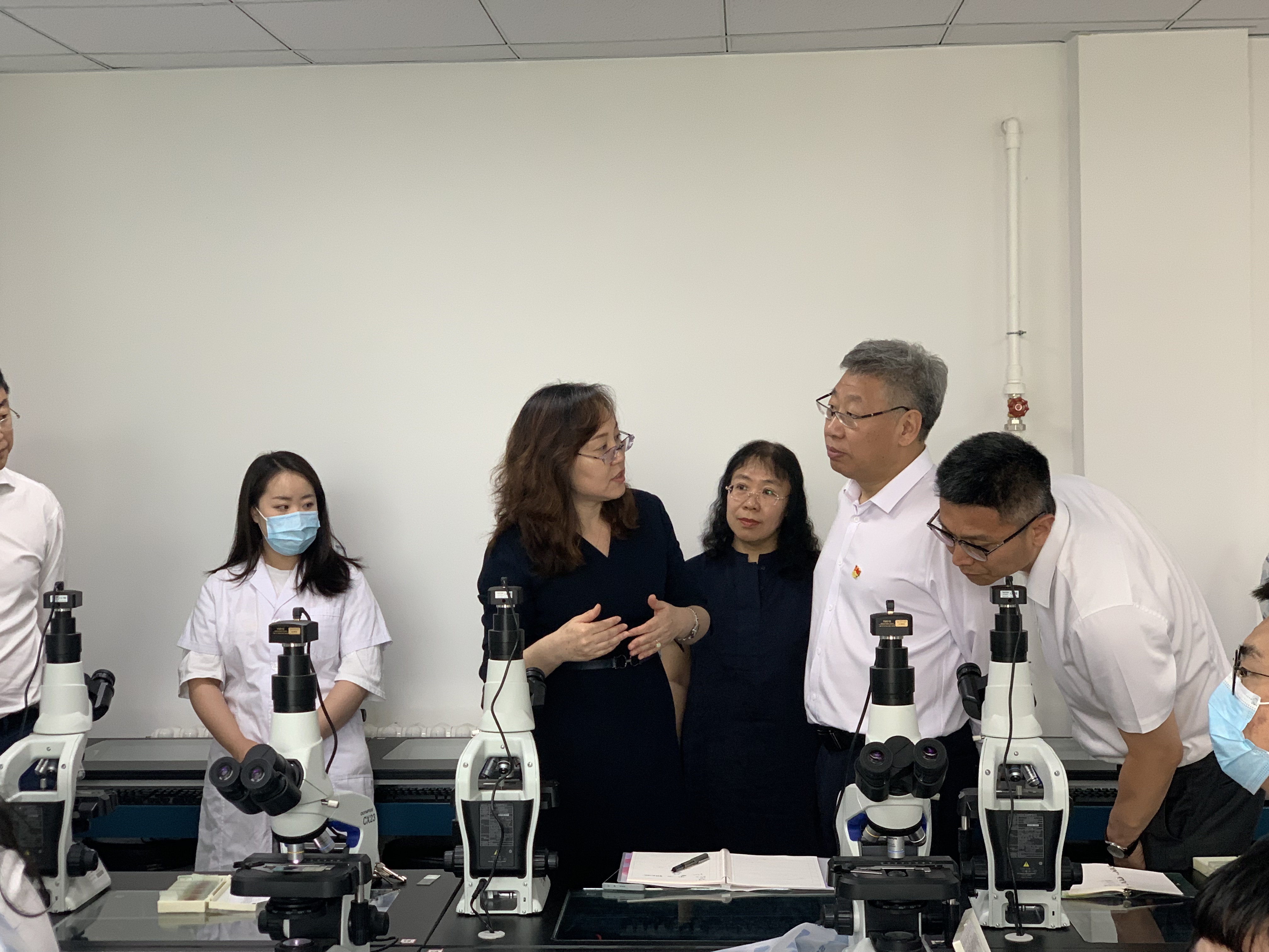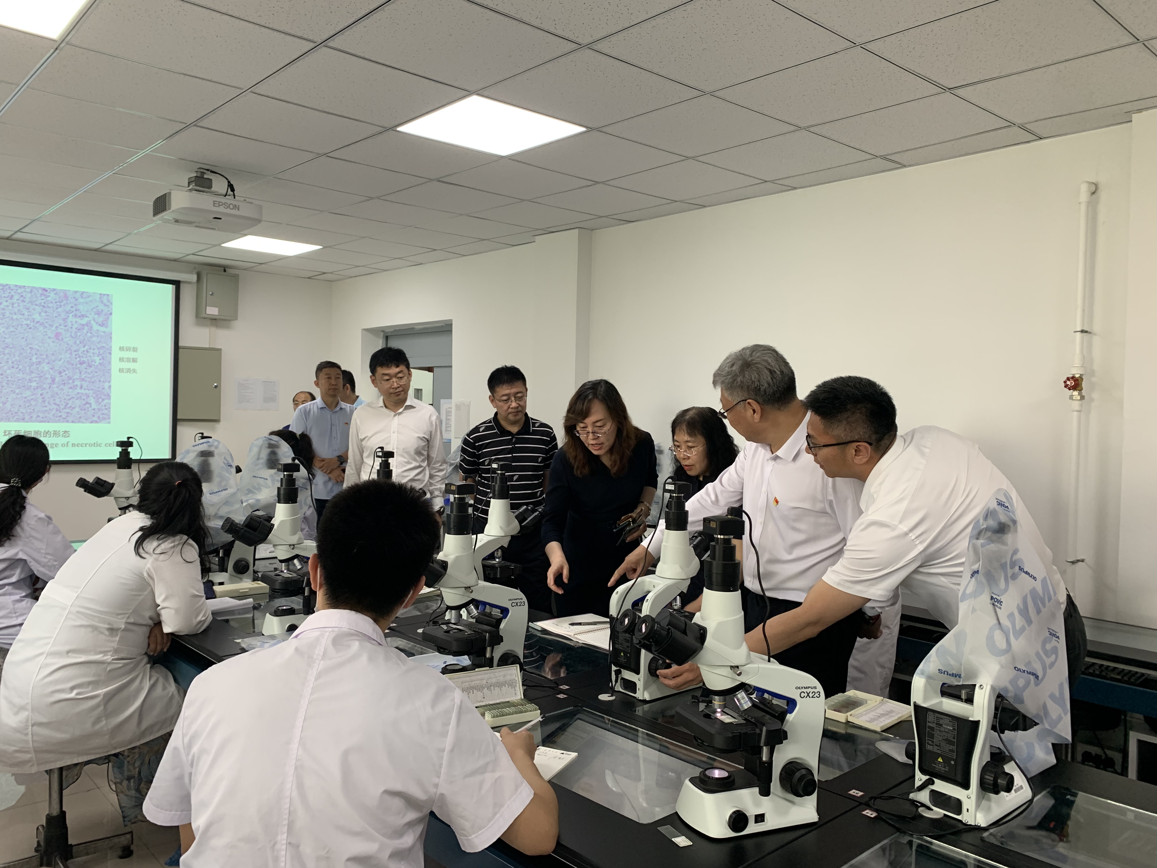 院长王放的工作汇报,随后,走进实验室向师生表达问候。在可移动实验平台,于蕾老师和学生们正在做的家兔呼吸运动的调节手术演示实验,学生可通过清晰的大屏幕看到手术演示全过程,真正实现互联互通,实时互动。在病理实习课堂,观摩了何旭老师“损伤的修复”课程,观看了学生的实验演示并亲切问候同学们的学习状况,病理生物学教育部重点实验室主任、副院长辛颖向冯书记介绍了病理学形态实验的相关情况。冯书记对同学们的实操能力给予了充分肯定。在分子生物学实验室,老师正在带领同学们进行转基因斑马鱼克隆实验。斑马鱼是国际上用于快速研究人类疾病信号传导途径、有效药物高通量筛选的最佳模式生物之一。冯书记对学院在斑马鱼方面的前沿研究表示肯定并寄予厚望,期待学院的斑马鱼研究能在探索人类疾病发病机理,筛选治疗靶点,进行新药开发以及药物毒性与安全性评价上发挥更大的作用。最后,冯书记一行来到医学影像虚拟解剖联合实验中心检查调研,参观3D打印白求恩像,观看了羞羞漫画