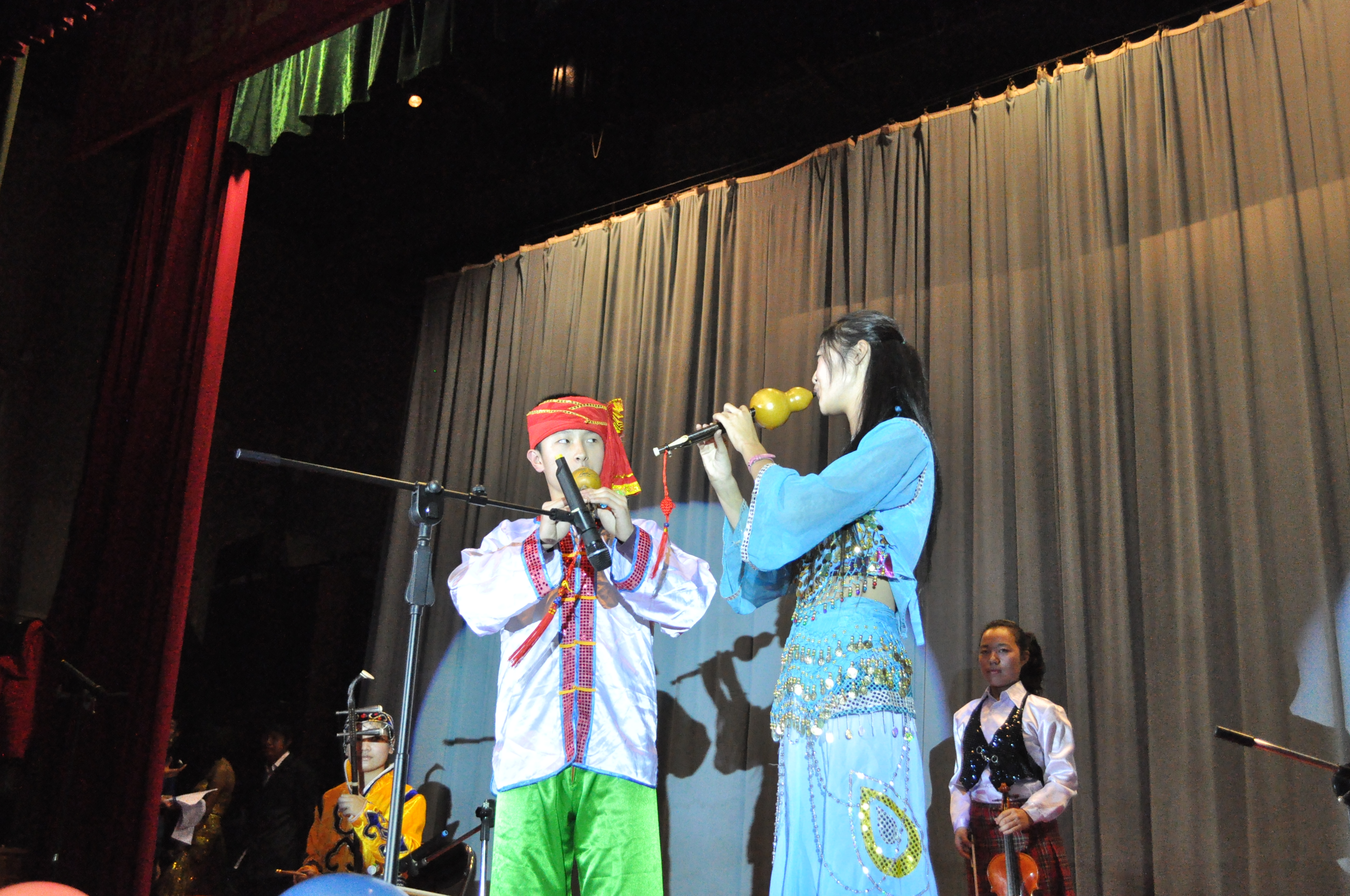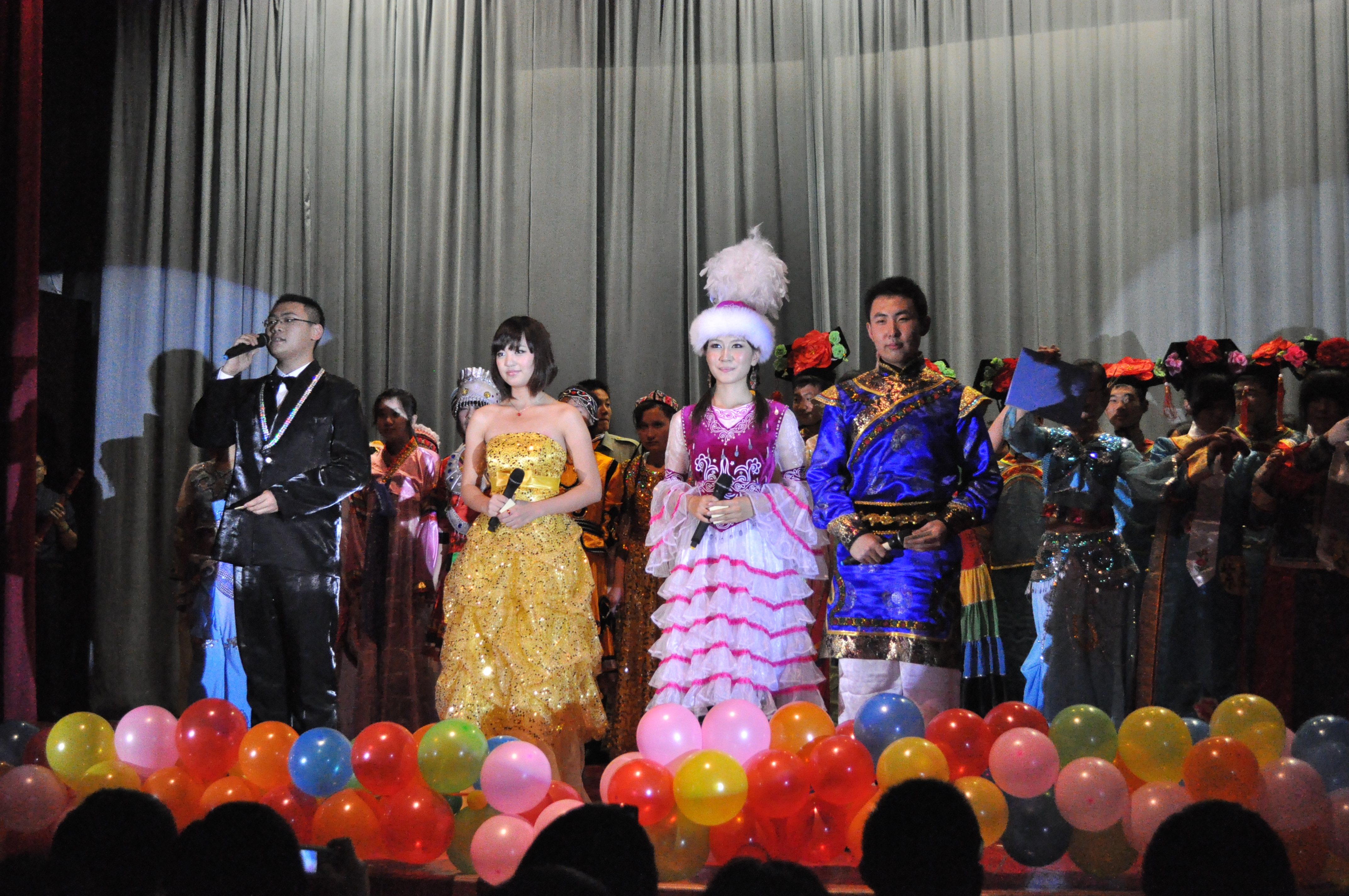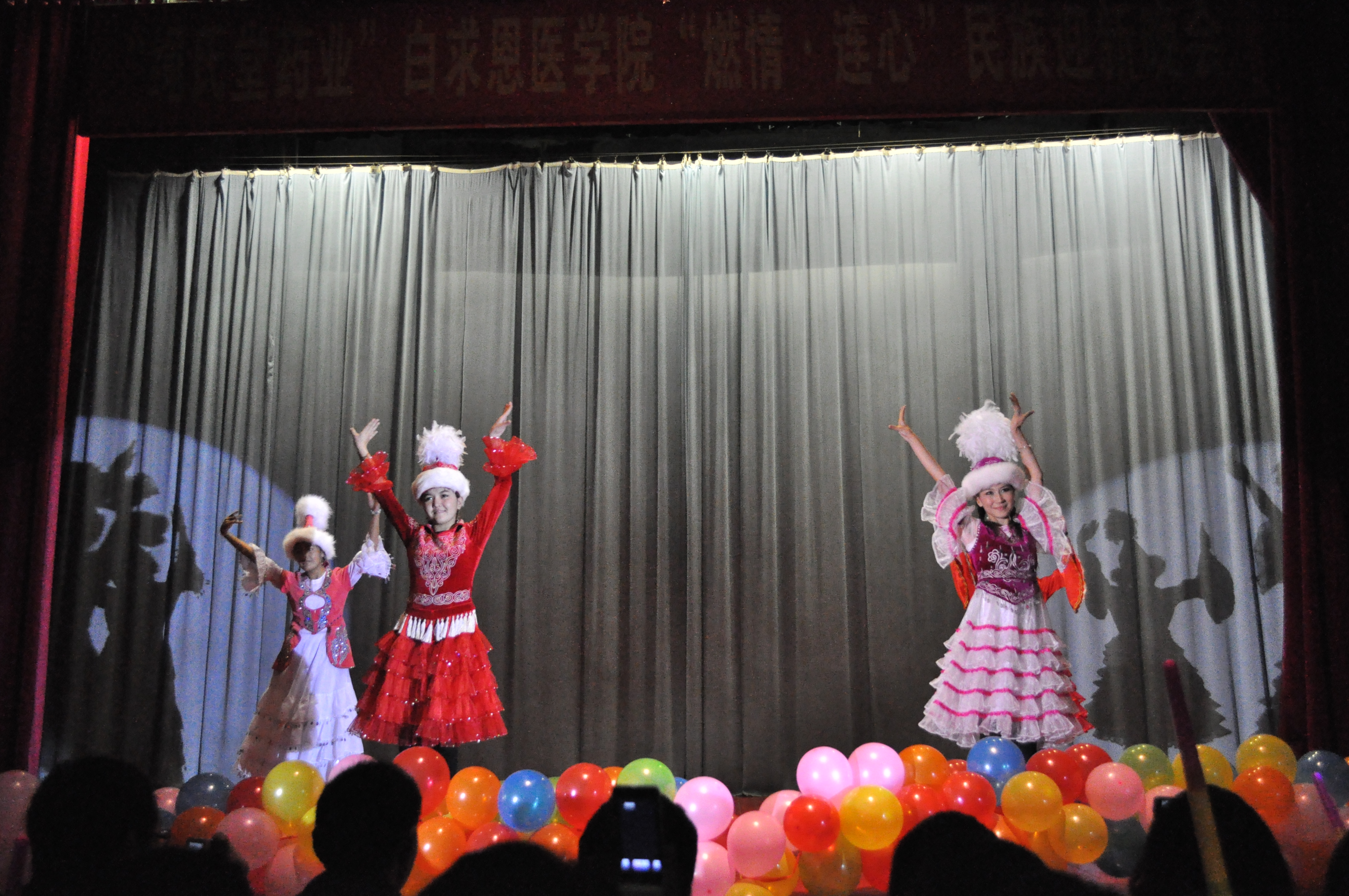 ”、“我爱白求恩医学院”,瞬息引爆了全场的激情。接下来,各族演员纷纷登场,共同打造了一场民族盛会。“维吾尔风情”表现了维吾尔姑娘的婀娜多姿;“欢腾的草原”则表达了藏族同胞的爽朗与好客;“天边”展现了蒙古人的苍劲有力;朝鲜族同学的表演将民族风情与前卫时尚相结合;满族同学则用荒诞的手法表现了“尔康与容嬷嬷不得不说的事”。“风华国韵”用小提琴、二胡、葫芦丝演绎了感人的音符,“民族盛会”展现了白族、哈萨克族、布朗族、壮族、彝族、柯尔克孜族动人的歌声。短剧《我们是一家人》、诗朗诵《新的征程》表现了各民族同学团结一心,努力成才的决心与精神,把晚会推向一个又一个高潮,各民族同学欢聚一堂,共享幸福时光。