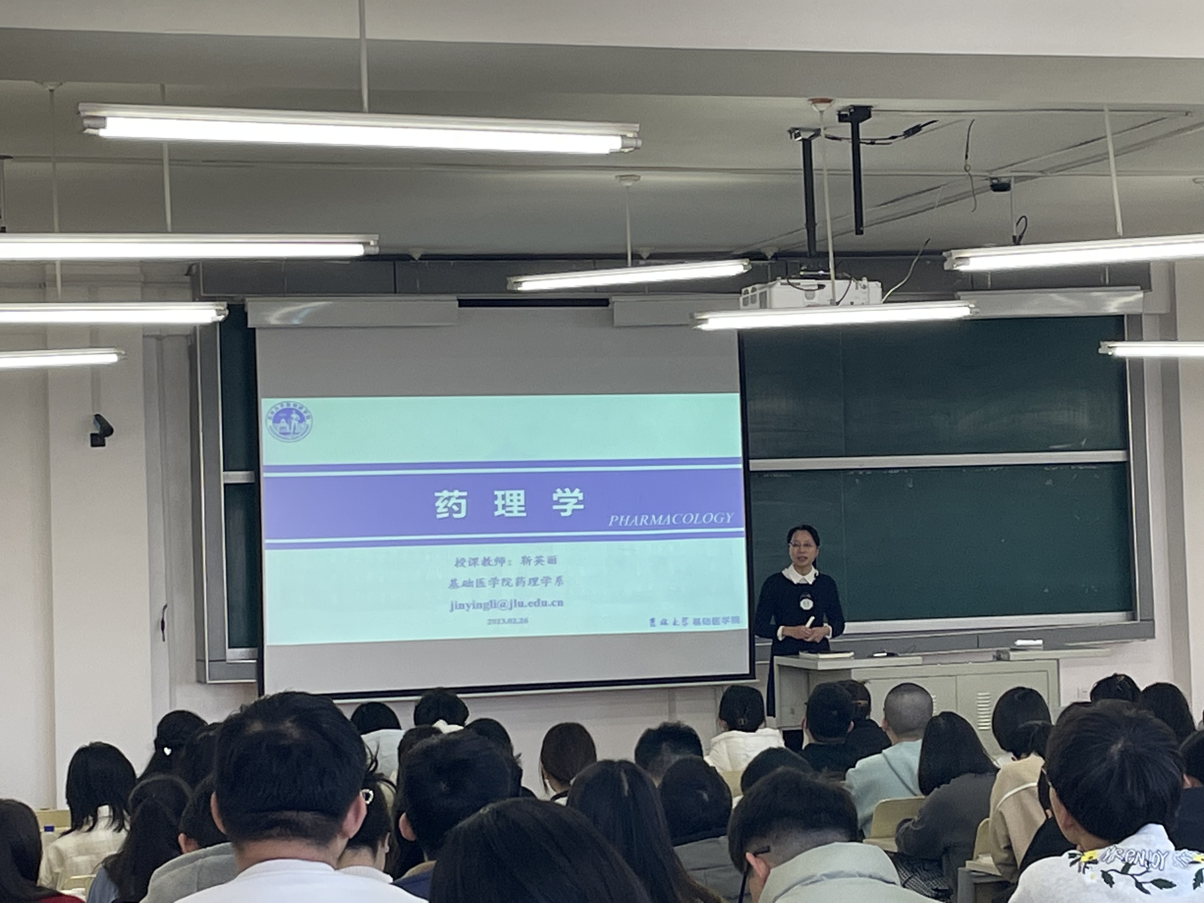 我院药理学系教师靳英丽为2022级临床医学5+3一体化本科生讲授《药理学》开学第一节课。靳英丽老师精神饱满,备课充分,讲解清晰;学生们精神状态良好,积极参与学习通主题讨论活动。