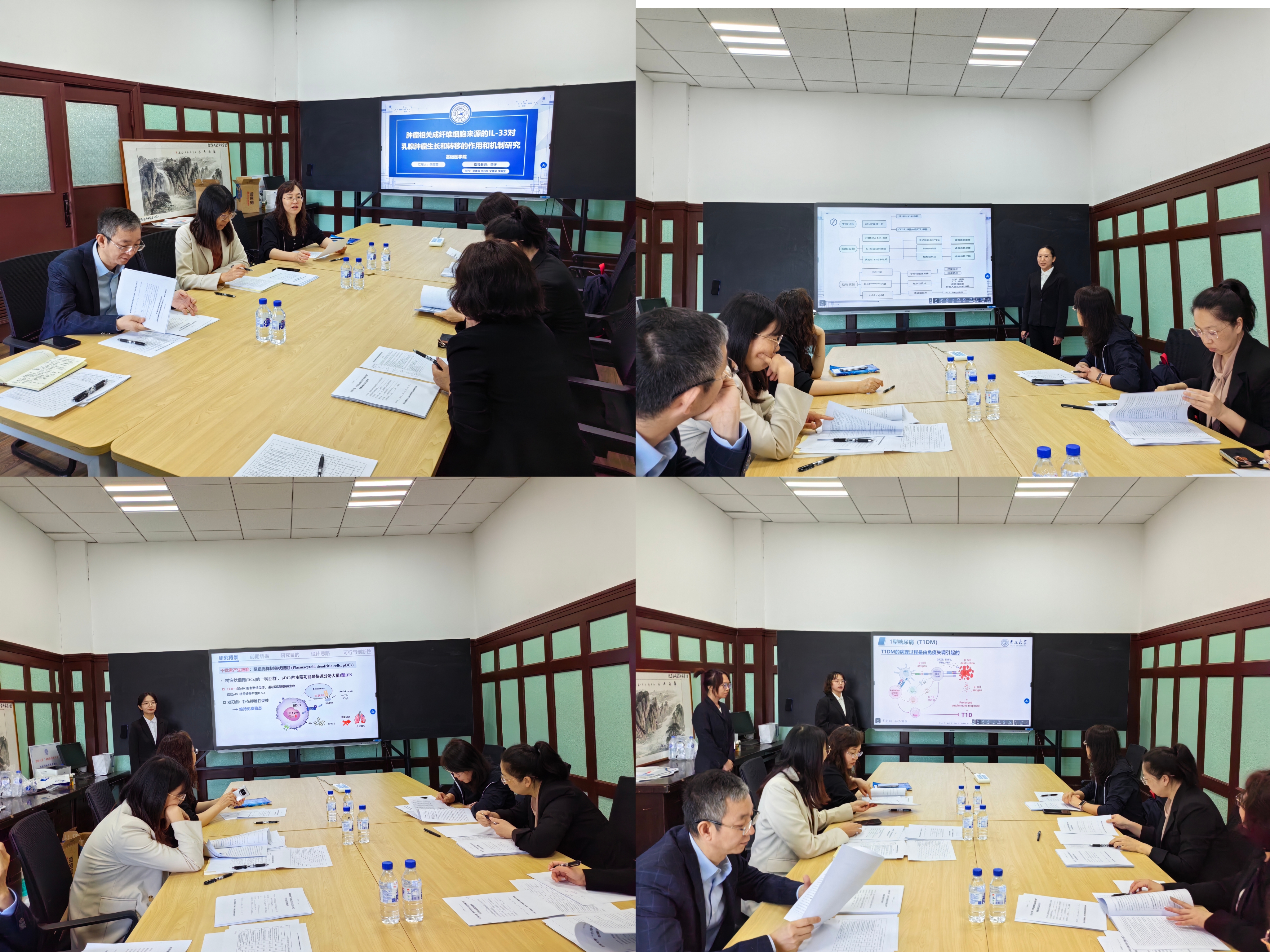 副院长刘海岩教授、院长助理张明教授、免疫学学系主任杨巍教授、医学生物学实验中心主任乔萍副教授、生物化学教研室副主任徐彩娜教授担任本次评委,会议由教学副院长辛颖教授主持。