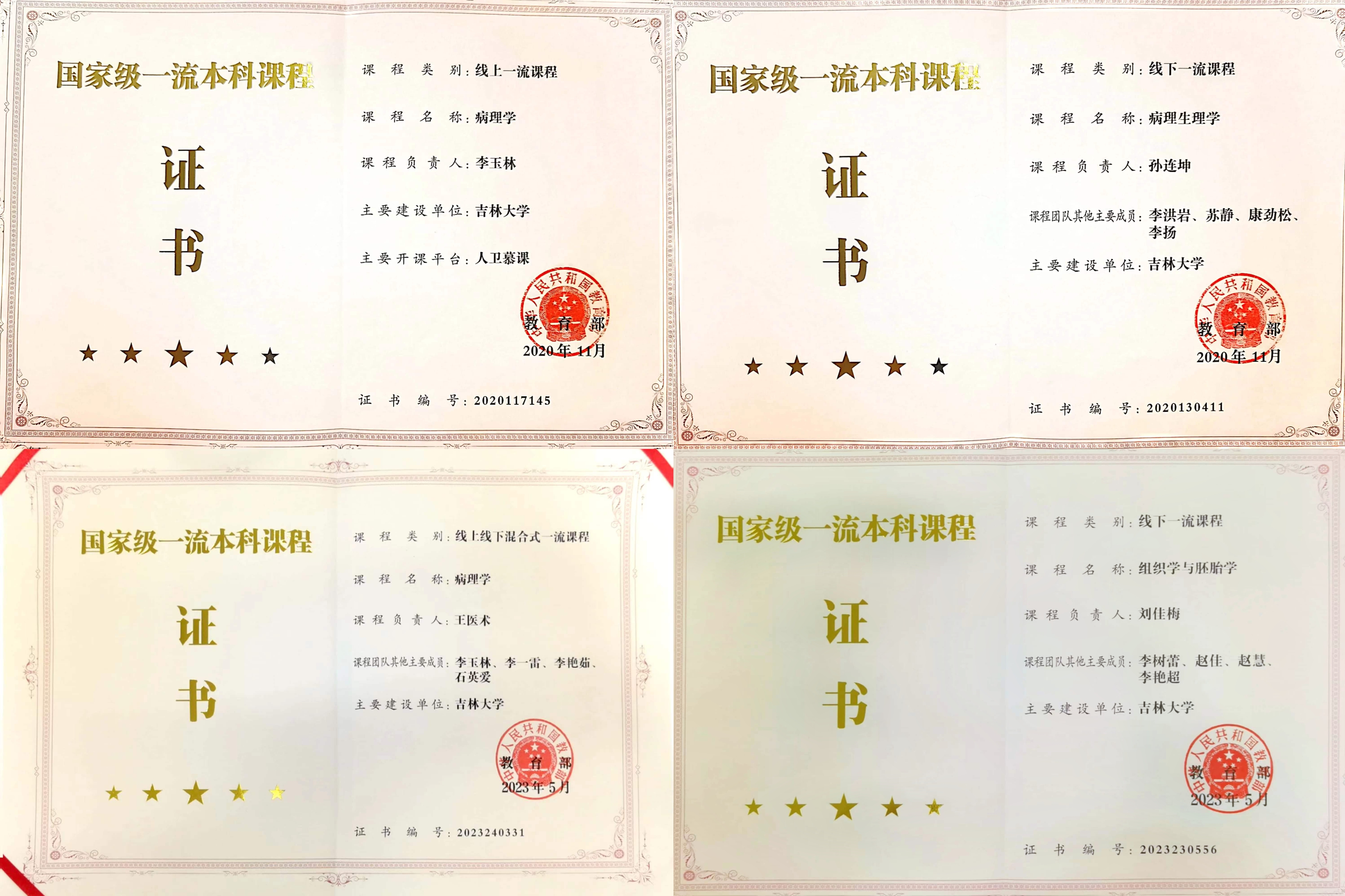 学院一直重视课程建设工作,致力于打造高质量的课程体系。学院建设有4门国家级一流本科课程,1门国家级精品课程,1门国家精品在线开放课程,2门吉林省高校一流本科课程,2门吉林省虚拟仿真实验教学一流本科课程,9门省级精品课程,吉林省课程思政示范课程2门,吉林省课程思政建设课程1门。在2023年吉林省高校课程思政教学典范案例和优秀案例评选中,《病理学》被评为课程思政教学优秀案例,《医学免疫学》被评为课程思政教学典范案例。