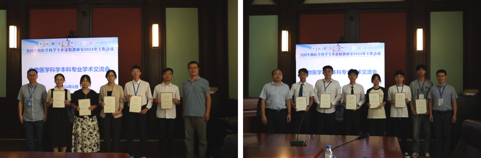 院史馆,深入了解学院发展历程。下午,来自8所高校的生物医学科学专业的11名本科同学就个人学习心得、课题研究进展、科研实践活动等内容进行了汇报分享。经过参会教师综合评定,5名学生获得最佳学术奖,6名学生获得最佳风采奖,并由蚌埠医科大学副院长刘长青教授、山东第一医科大学生物医学科学院院长王林教授、南方医科大学医学院张文勇教授、湘南学院院长雷昌斌副教授为获奖同学颁发证书,会议在融洽热烈的气氛中落下帷幕。