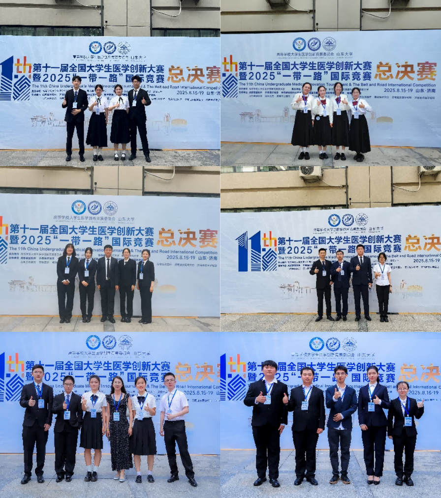 领导的鼎力支持,体现了学校及学院领导班子的长远布局和教师团队的辛勤付出。此次大赛充分展现了我校医学生的创新精神、科研素养与实践能力,也体现了新医科建设背景下我校教师的教学水平与育人成效。我校将以此为契机,继续深化人才培养模式改革,培养更多拔尖创新医学人才,为推进医学教育创新发展贡献力量。