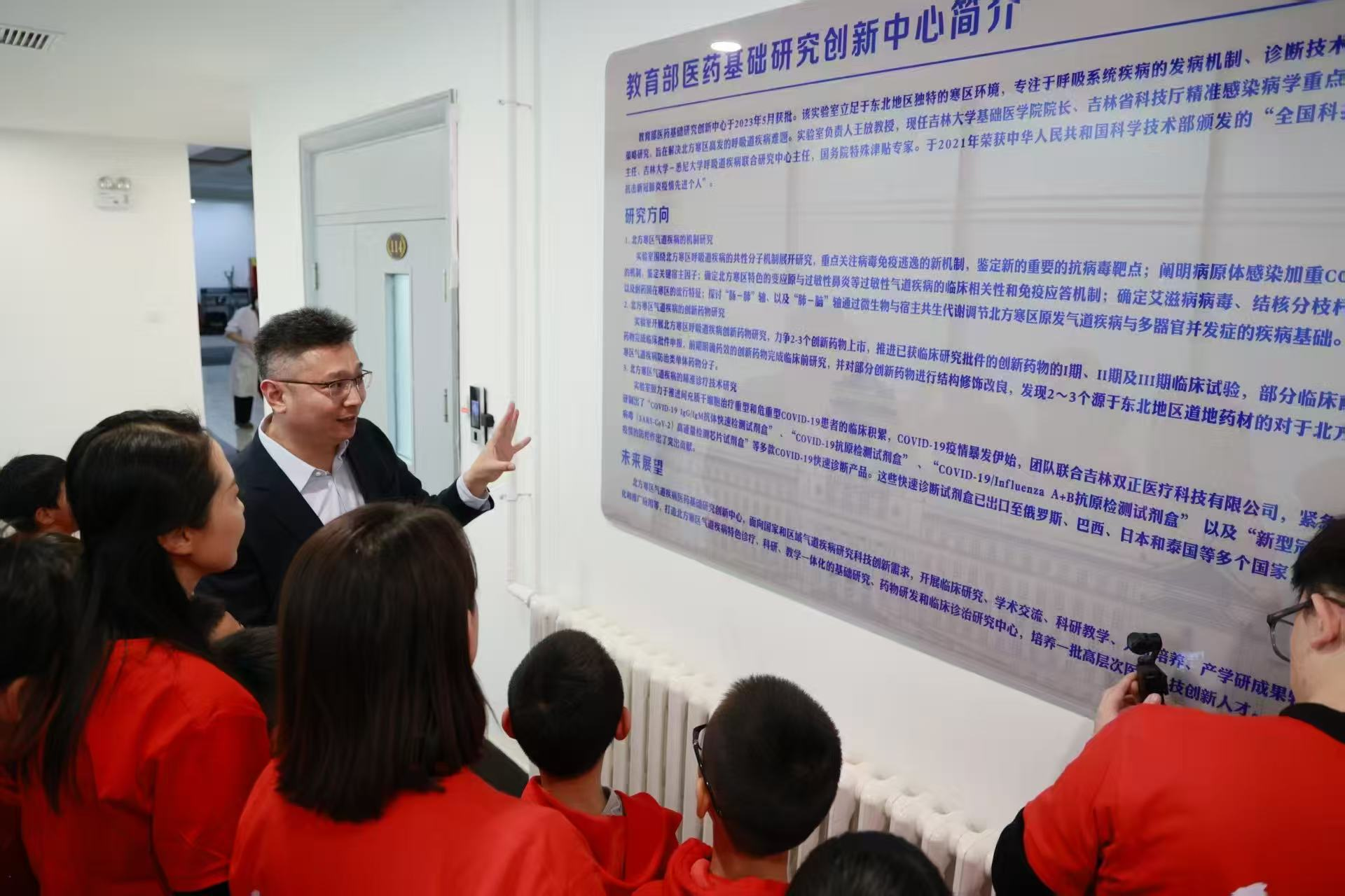 院长王放教授带队,带领孩子们先后参观了学院院史馆、教育部北方寒区气道疾病医药基础研究创新中心人参研究实验室,并走进寄生虫标本展区。院史馆红色革命主题教育生动鲜活,珍贵的史料与讲解让孩子们感悟医学先辈的使命担当;人参研究实验室的前沿科研成果展示,让孩子们领略了医学科研的魅力;学系老师对寄生虫大体标本的细致讲解,则帮助孩子们建立了对人体健康与病原生物的基础认知。