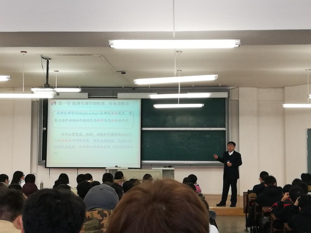 在新民校区第一教学楼201教室,孙连坤教授正在为2016级医学五年制第一教学班同学上第一堂病理生理学课。课堂上,孙教授为同学们介绍了病理生理学的性质、特点、主要内容等问题,讲解了人类疾病的病因、发病机制及转归,课堂气氛活跃。课间,学生纷纷走到讲台与孙教授沟通学习情况。学生们表示非常喜欢孙教授的讲授,通过老师幽默的语言、讲授中熟悉的生活实例,明晰了医学学科前沿及发展趋势,领会了老师重在传授医学专业基础课的学习方法,“授人以渔”,明白学医者应富含人文关怀,启发自己做好个人学业规划及职业规划。