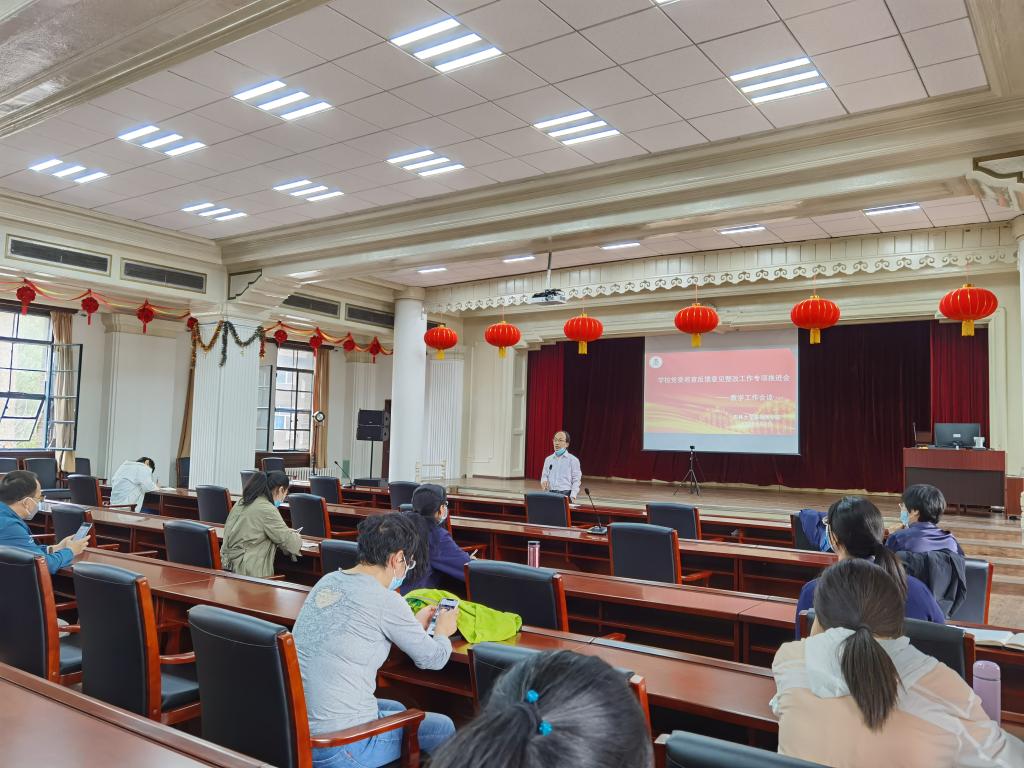在二楼报告厅召开了学校党委巡察反馈意见整改工作专项推进会暨教学工作会议,学院教学委员会成员、学系主任以及各学系教师代表参加了会议。会议由李洪岩副院长主持。