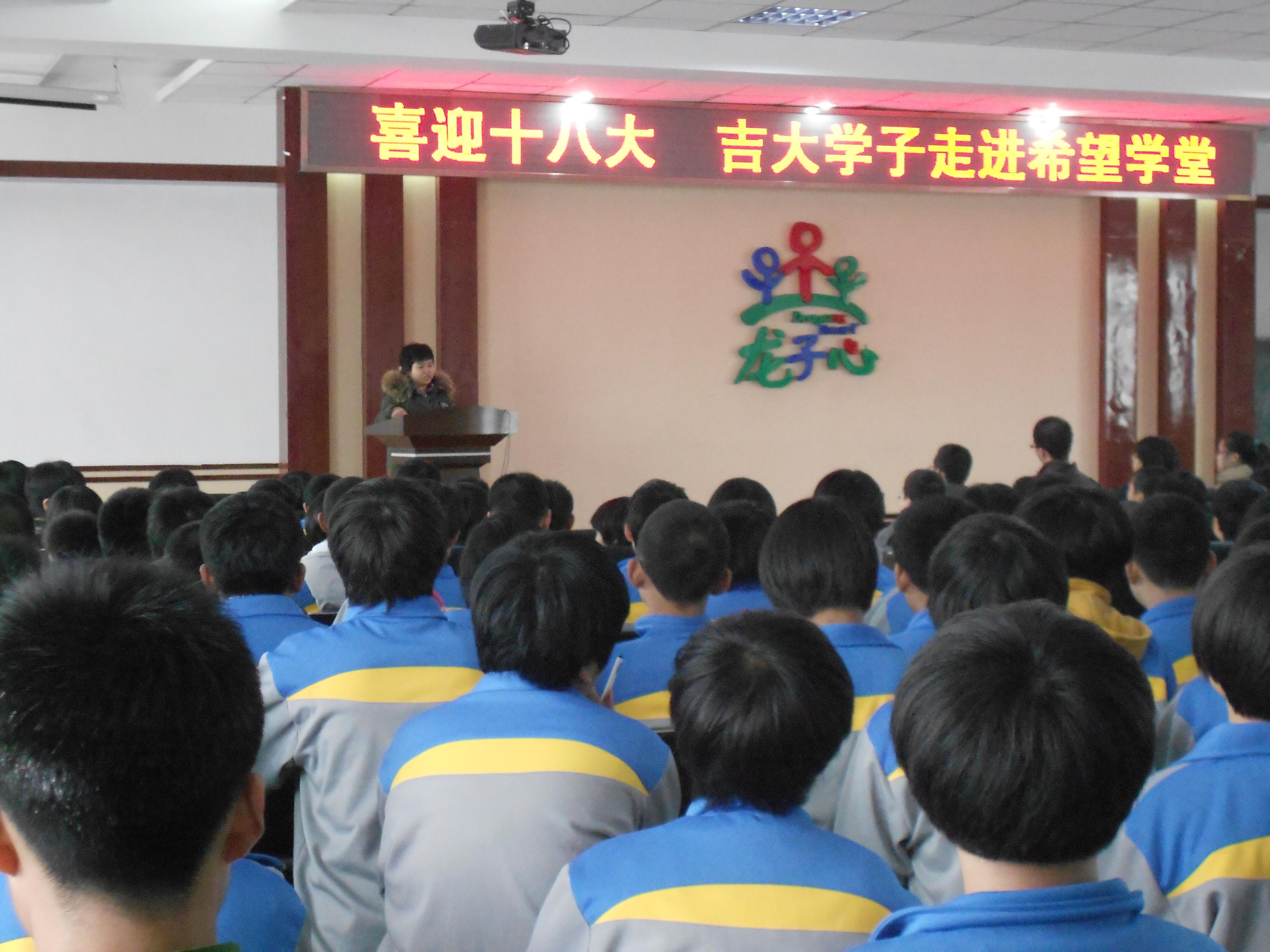 为落实“弘扬白求恩精神,创建‘五个一’党支部”项目活动内容,11月13日下午,白求恩医学院2011级硕士党支部一行10人冒雪前往长春市龙子心希望学校,开展主题为“喜迎十八大 吉大学子走进希望学堂”学习经验交流活动。长春市龙子心希望学校初中二年级学生200余人参加了活动。