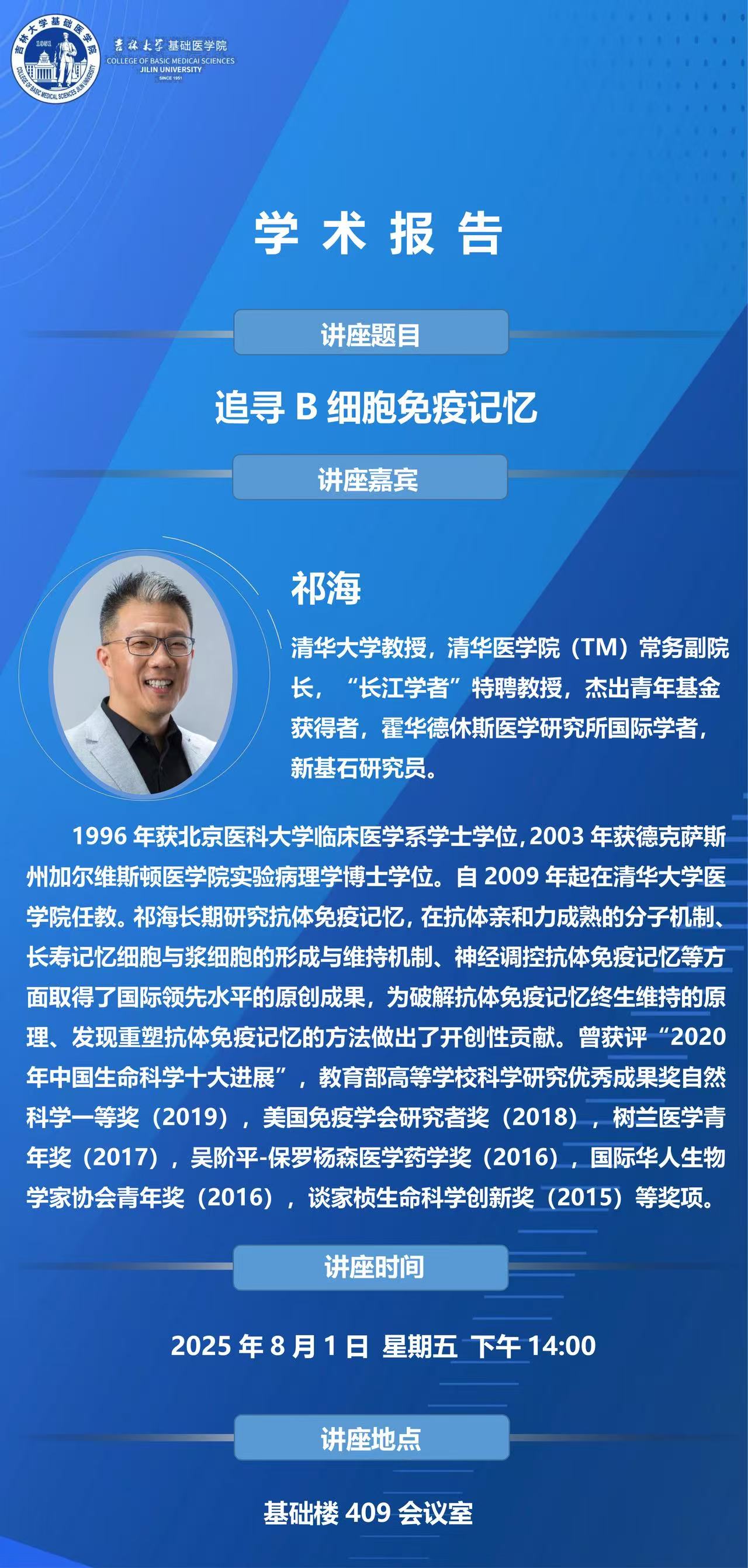 讲座嘉宾:祁海,清华大学教授,清华医学院常务副院长。
